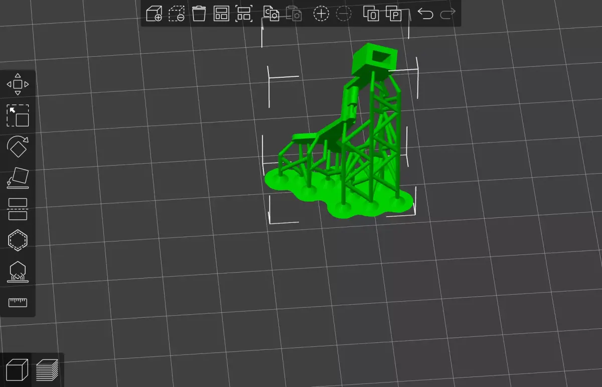 Um die Teile mit Stützstrukturen drucken zu können, wird ein 3D-Drucker mit einem Bauraum von mindestens 149 × 50 × 137 mm benötigt.