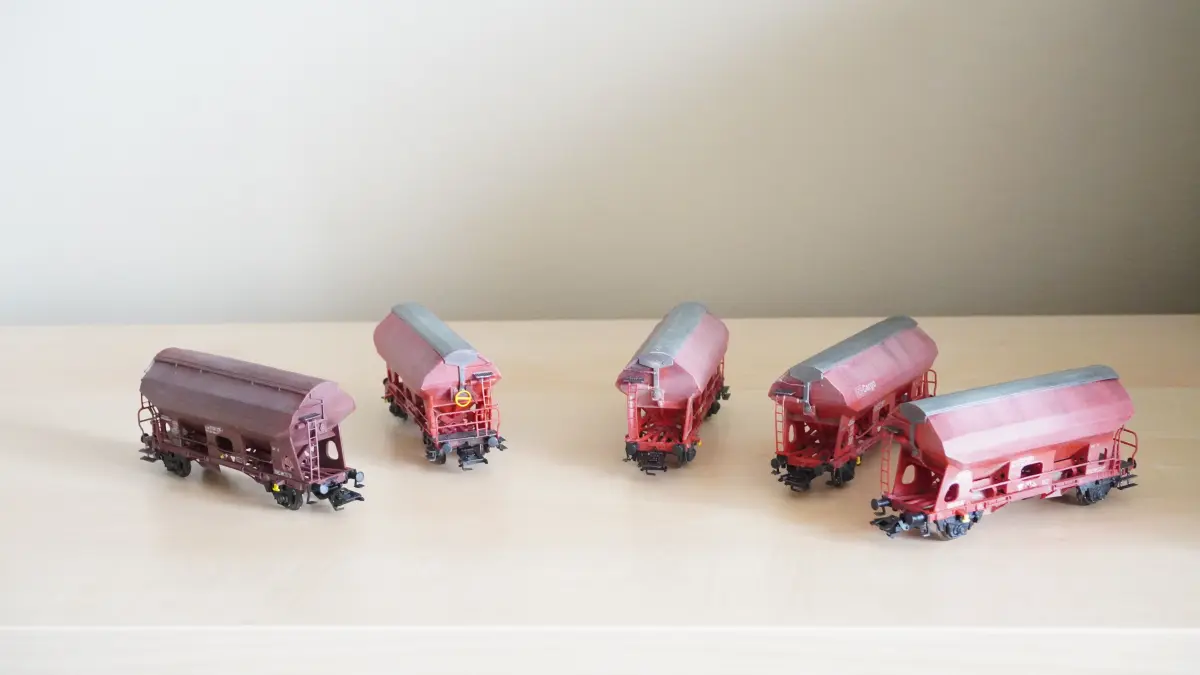 Dies ist der Tds Selbstentladewagen in H0. Es sind sowohl die Modelle ohne als auch mit Stützstrukturen enthalten. Alle Details, die anfällig dafür sind, während des Lackierens und Testens des Wagens abzubrechen (z.b. Trittbleche) sind separate Teile und müssen angeklebt werden.