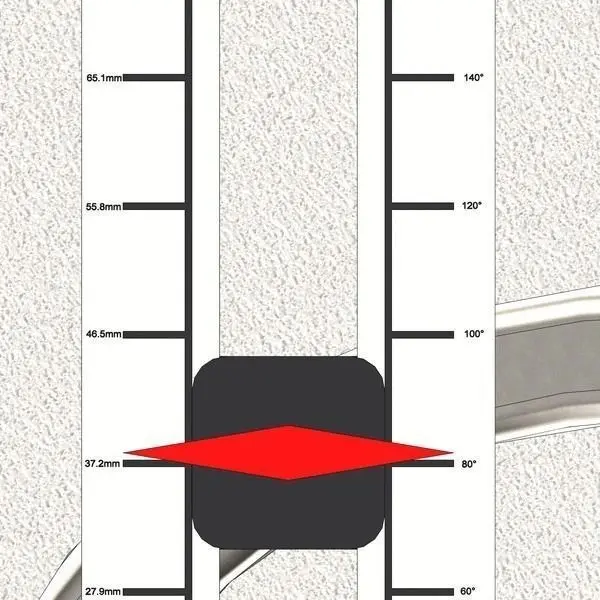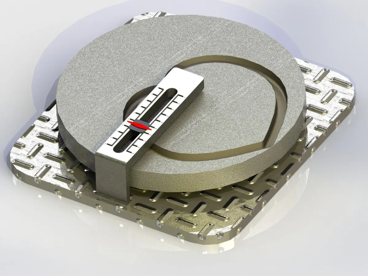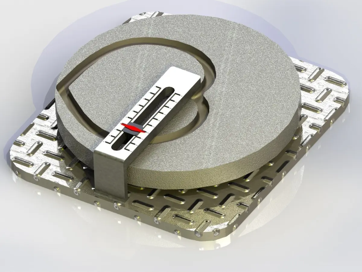 This mechanism is a converter that translates (or measures) rotational motion to linear motion with the below characteristic:1degree=0.47mm