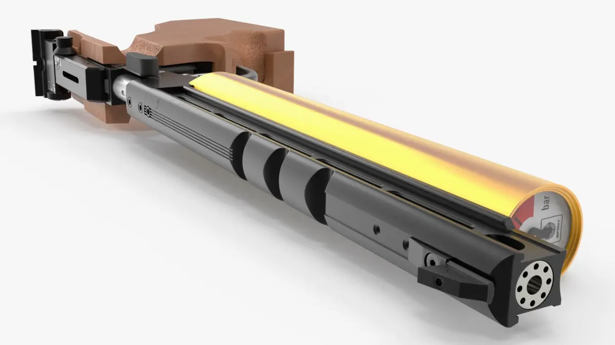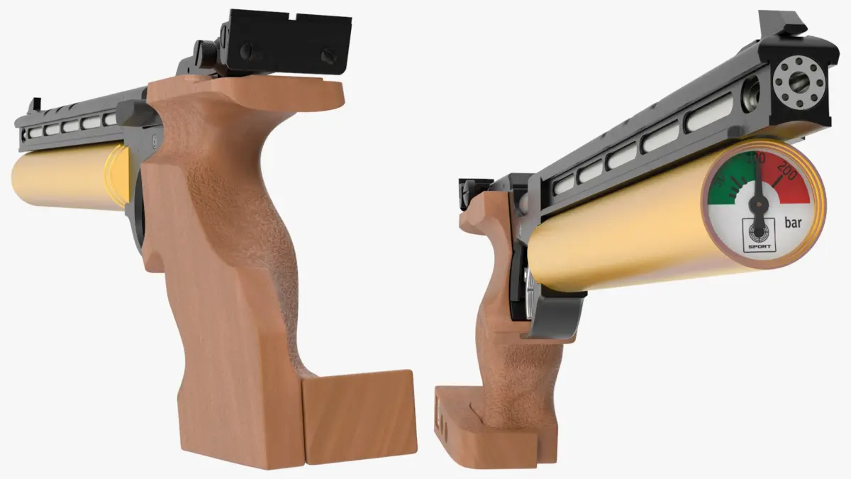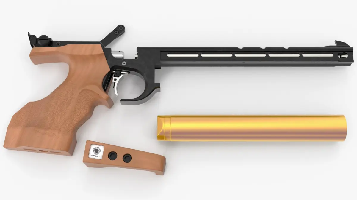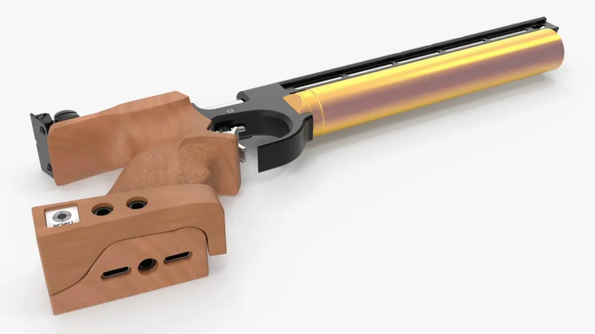 Precision PCP Target Pistol for Sport Shooting is a three-dimensional model of a pre-charged pneumatic (PCP) target pistol designed for precision competitive shooting and marksmanship practice.