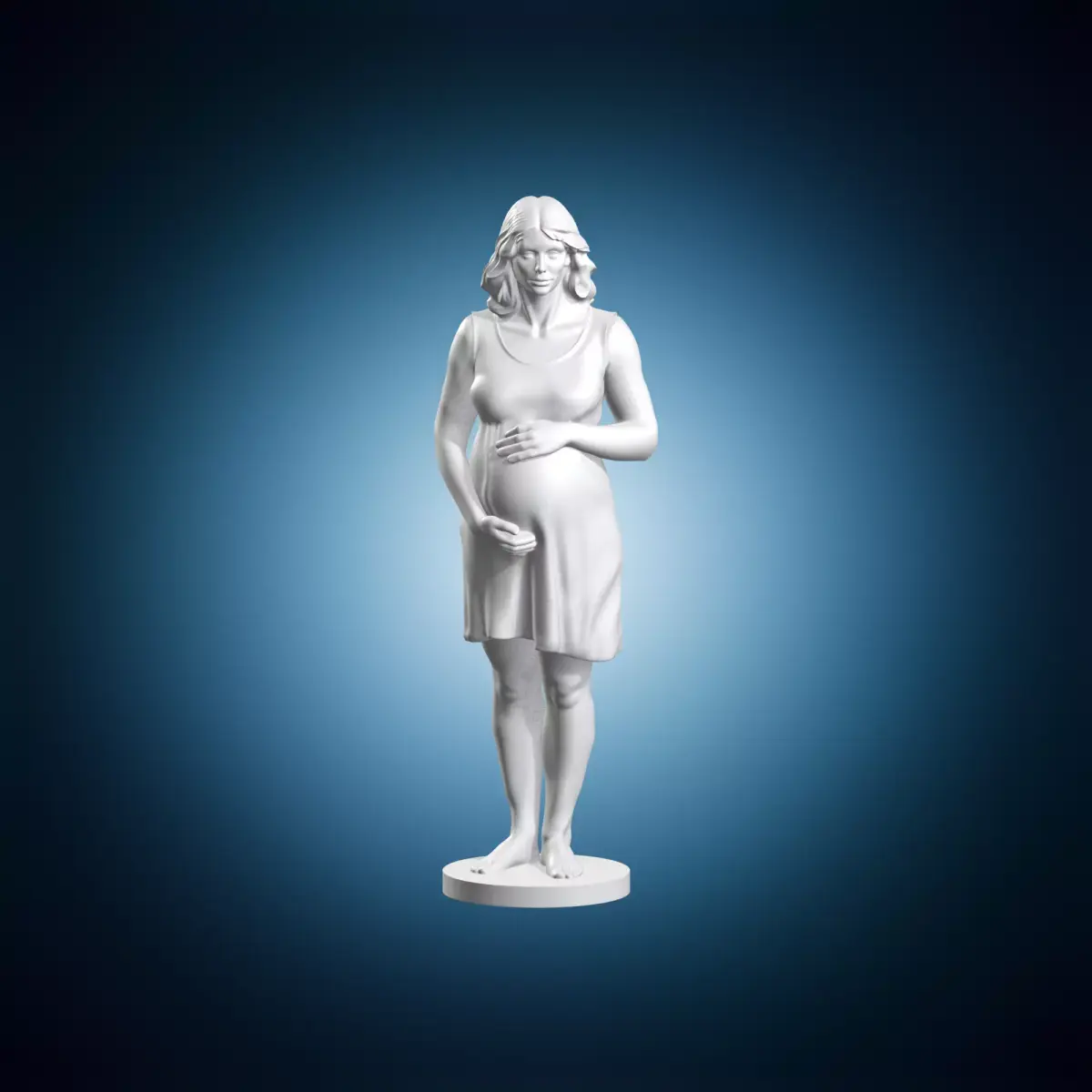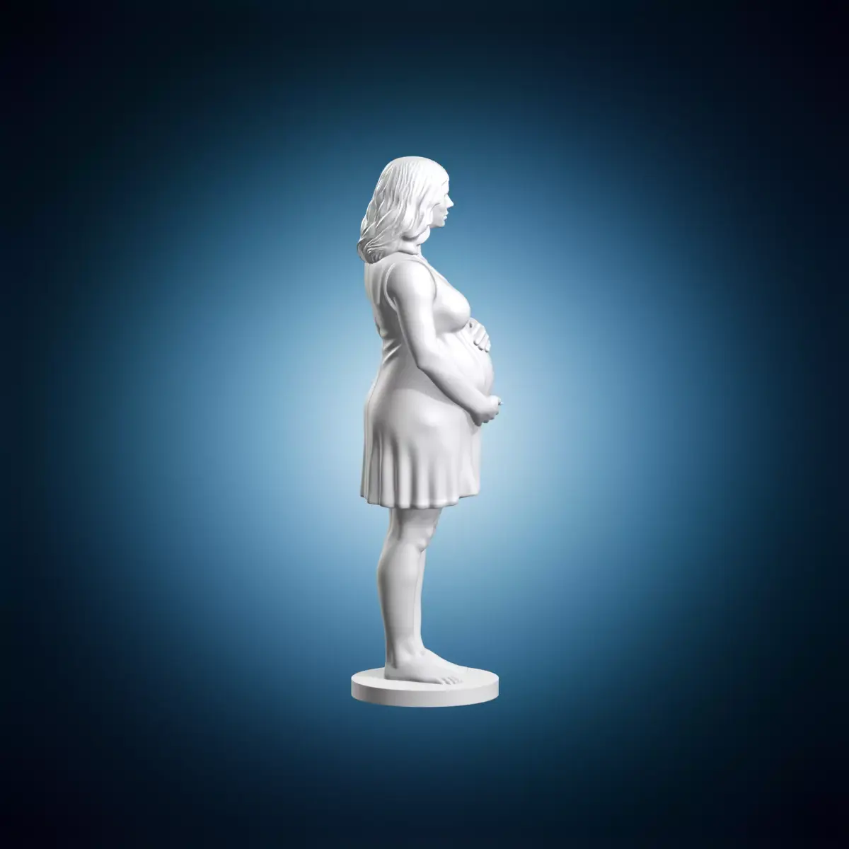 A 3D model of a pregnant woman as a sculpture miniature. This figurine is perfect for decorative purposes or as a unique gift idea. It is designed to be highly detailed and realistic, making it a great addition to any collection. The model can be used in various applications such as architectural visualization, product design, or artistic projects. It is also suitable for educational purposes or as a tool for creative professionals.