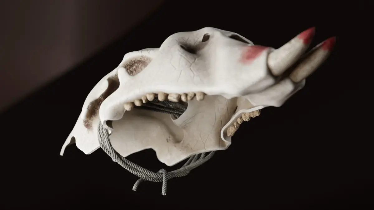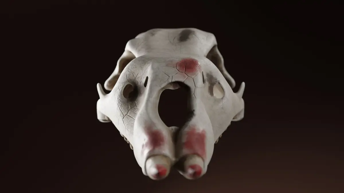 The skull of a grizzly is taken as a basis (maybe))), a model is made in a blender, manually unwrapped, retopologied from high poly mesh, and textured in Substance Painter.