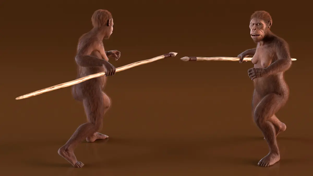 For anthropological reconstructions, prehistoric wildlife scenes, educational animations, museum exhibition visuals, survival evolution simulations, paleoart illustrations, archaeological theory media, and documentary or historical visualization projects.