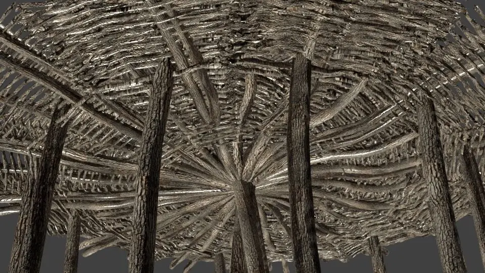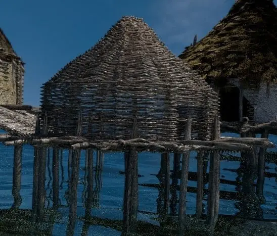 Detailed and photo-realistic 3D model of a Prehistoric wooden house, more specifically a coastal Neolithic Crannog popular in ice age Wales/Scotland/Ireland. This model is perfect for scenes both in the water and on land, the beams either acting as the foundation or anchored stakes in the riverbed. This design was created in Blender, is also currently available in fbx/obj/dae/3ds and is ready to be converted and/or rendered into ANY SUPPORTED 3D PROGRAMME for the desired effect of the customer, ready to be used straight away in games/film/media. All texture maps have been utilised for a realistic depiction (ambient occlusion, specular,normal,displacement,diffuse etc). Effectively an archaeological reconstruction of an archetypal Neolithic Crannog settlement, this design can be used as a generic prehistoric settlement for any scene. Crannogs were defensive prehistoric coastal dwellings and stilted/built in the centre of bodies of water (lakes, coastal sea, rivers and estuarine waters) in North-West Europe. They were used as dwellings over five millennia and still persist today in some areas. The moderate to high polycount serves the making up of hundreds of branches building the walls, roofs and outer balconies, themselves resting on larger logs acting as columns - retaining in detail the organic form of each of the unique branches. Model and entire scene environment included.