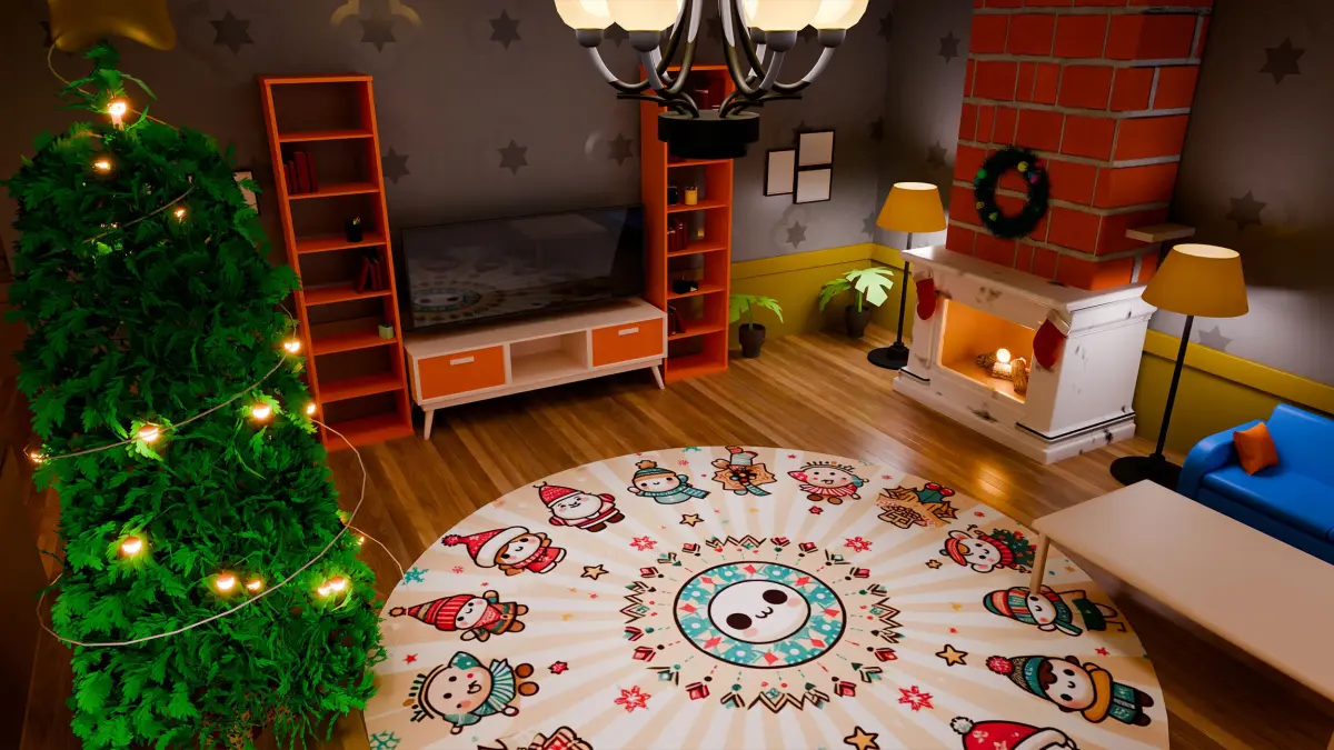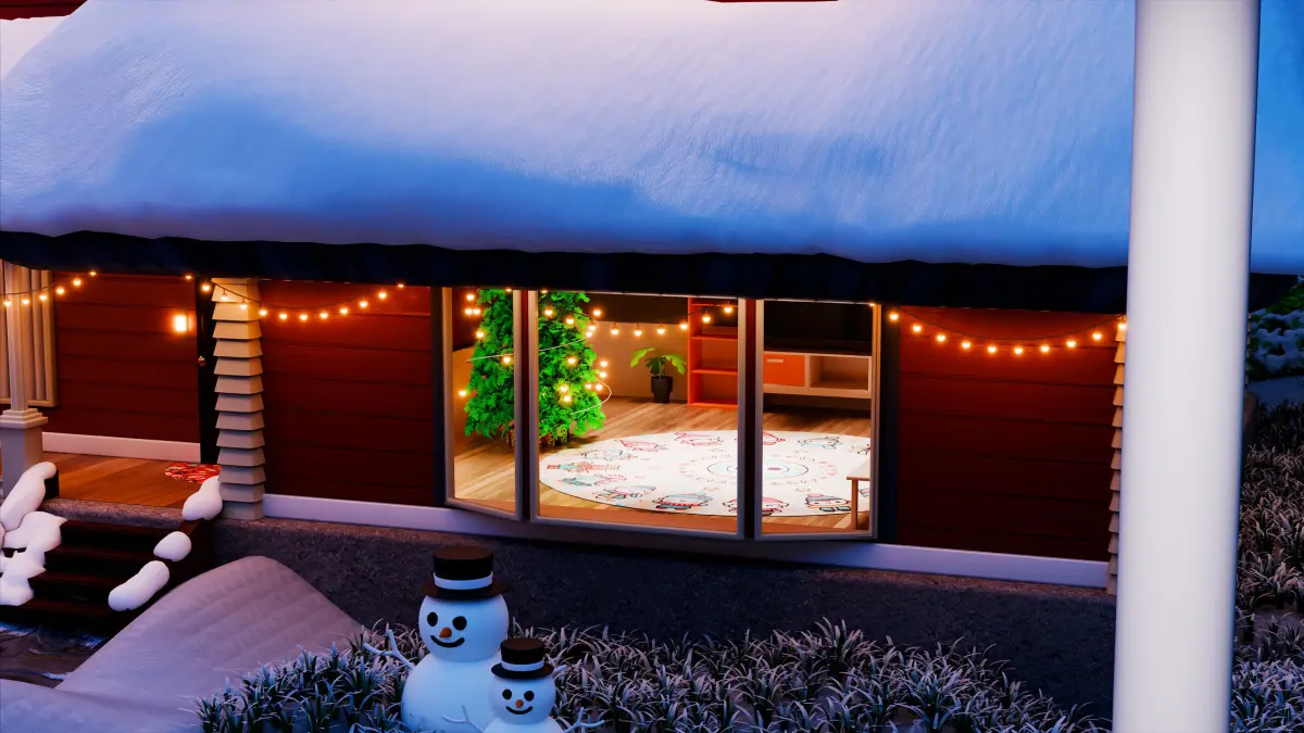 Inside, glowing interiors and a beautifully decorated Christmas tree offer depth and warmth, making this piece ideal for visual storytelling, seasonal animation, digital illustration, or architectural visualization. Every element—from the gently layered snow on the roof to the soft lighting design—has been thoughtfully built for a seamless blend of realism and whimsy.
