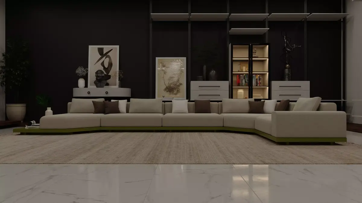 This is a high-quality 3D model of a modern modular sectional sofa, designed with clean lines and a luxury minimalistic style. The model is perfect for architectural visualization, interior design projects, and realistic living room renders.