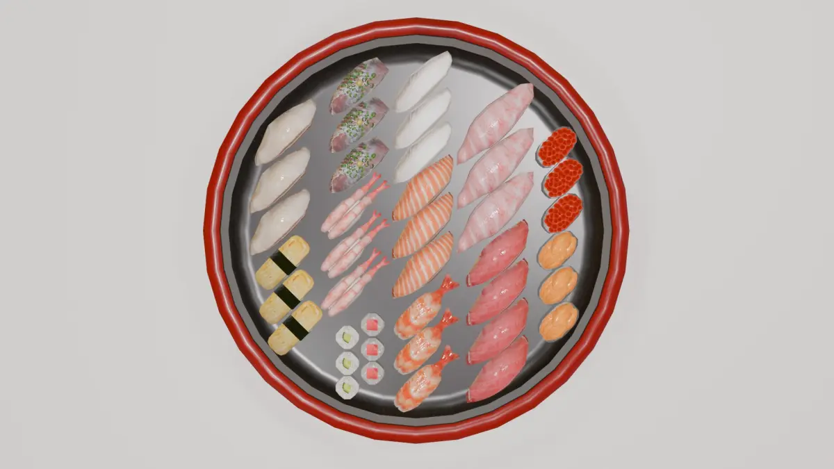 Otoro (Fatty Tuna) Maguro Akami (Lean Tuna) Horse Mackerel Squid Salmon Roe Sea Urchin Shrimp Cucumber Roll Salmon Tamagoyaki (Japanese Omelette) Sweet Shrimp Sea Bream Tekka Maki (Tuna Roll)