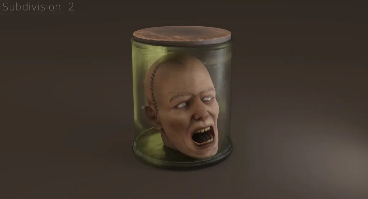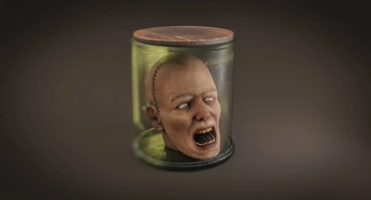 This is a preserved head from a serial killer from the XVIII century, he died on an asylum after several brain surgeries, they kept his head to study his mental ilness, He used to kill his victimins by turning their bodies insied out them dispose it on a table to eat like a holyday supper. People believe that sometimes the head turn its eyes and move his jaw