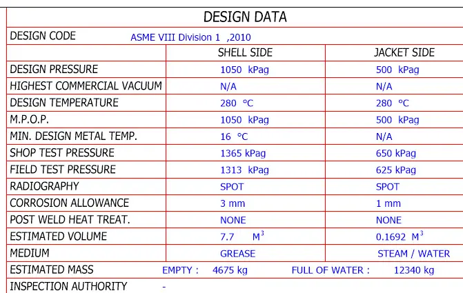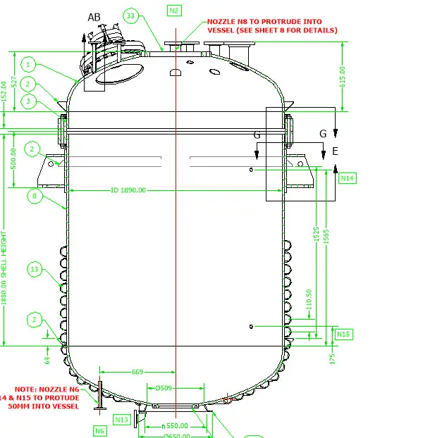 Pressure Vessel 1050kPag and 6000L with external coils for heating or cooling vessel. No model, designed detail drawing for Engineers or fabricators. I can modify drawing on request.