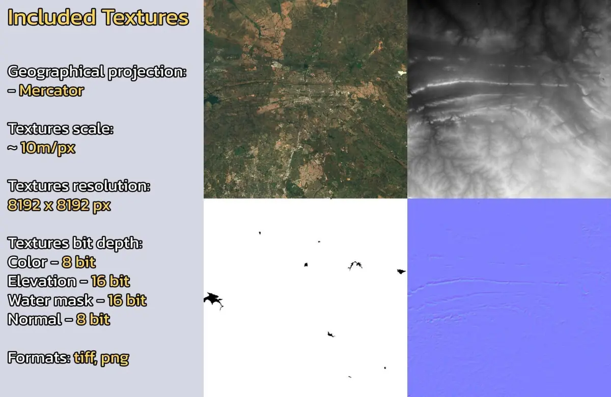 - Textures resolution: ~10m/px