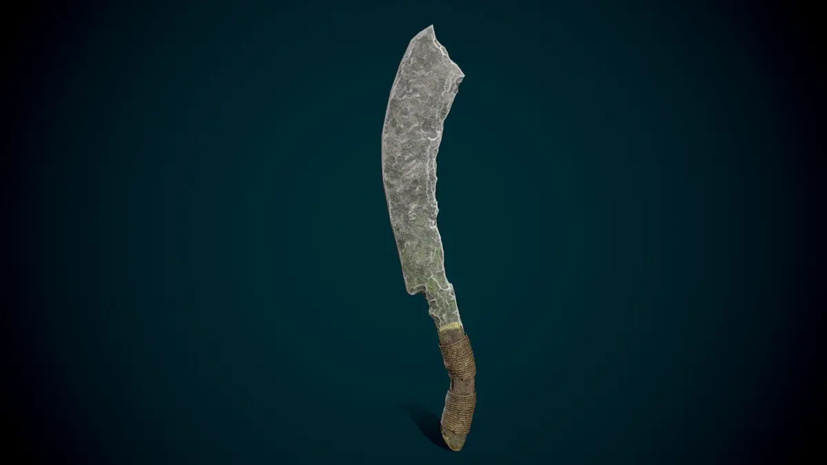 Model of stone Primal Cleaver, doesn't contain any ngons, has optimal topology. Archive contain such 2k textures: -Base color map -Metallic map -Normal map (OpenGL) -Roughness map. All pictures and video were rendered in Marmoset Toolbag 3.