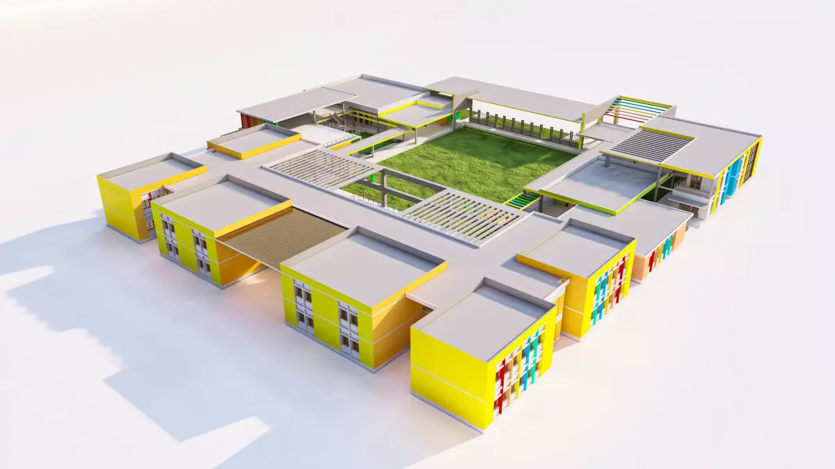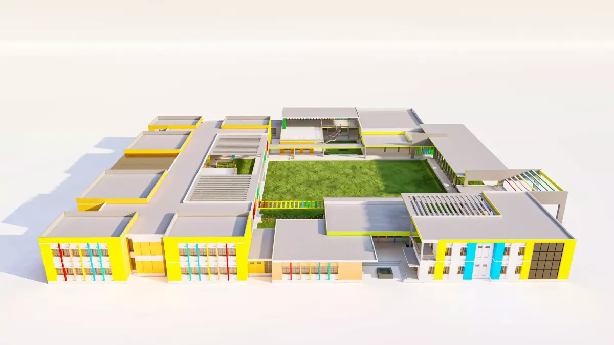 Collaborative Layout: Designed with open-plan interior concepts (exterior focus) that suggest a mix of traditional classrooms and flexible maker spaces.