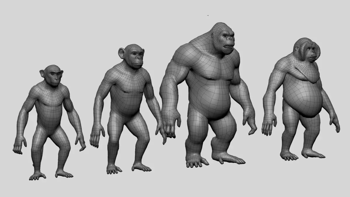 Primate BaseMesh was made with proper mesh flow and UVs unwrapped.