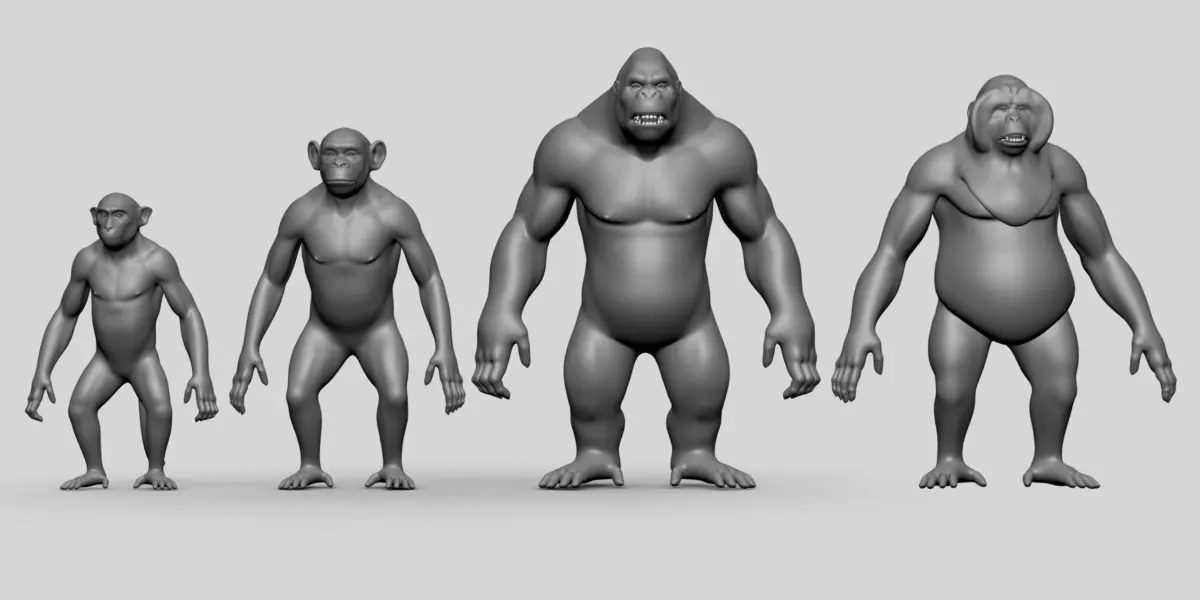 Primate BaseMesh II Chimpanzee I Gorilla I Monkey I Orangutan Low-poly 3D model