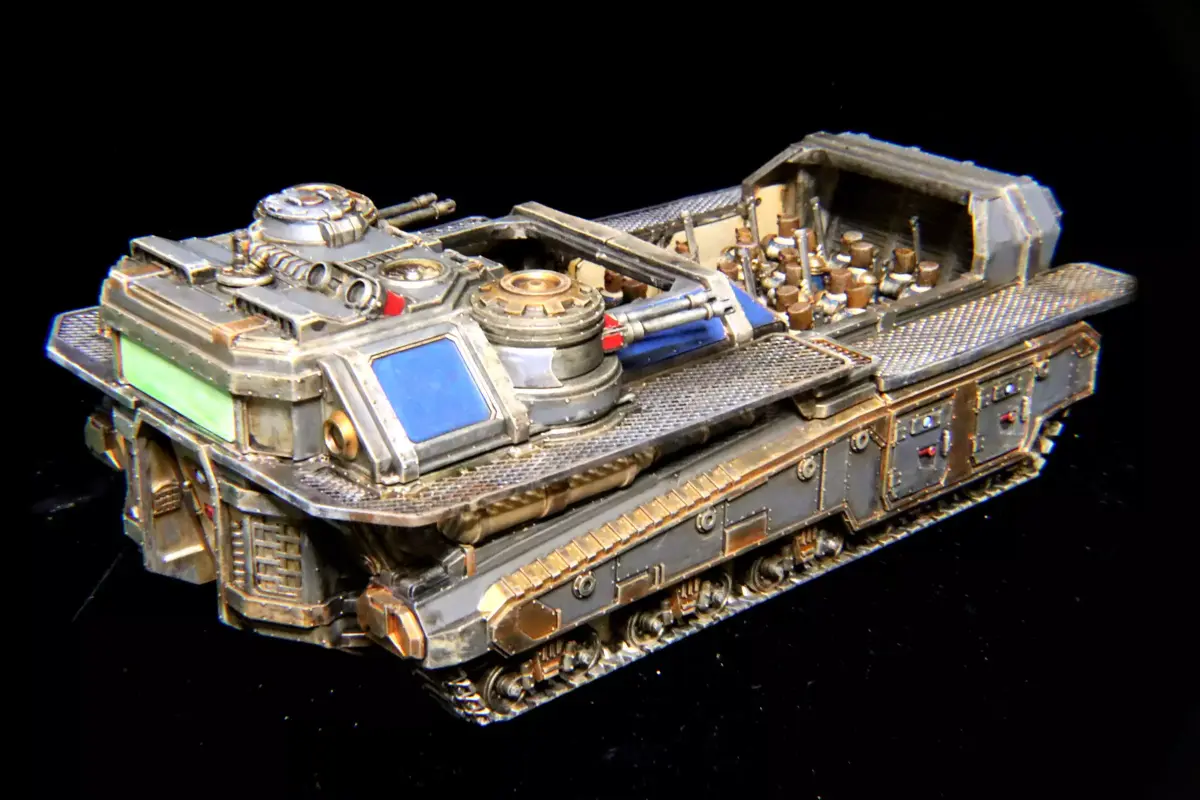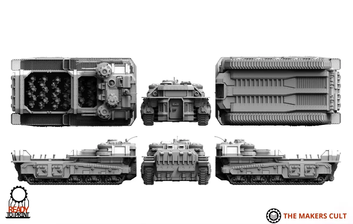 Heavy Transport, is a primative, but reliable carrier platform. Used by the scions in primarally cityfighting and openfield engagement, it can move up to 40 men with kit quickly up field and support them with quad autocannons.