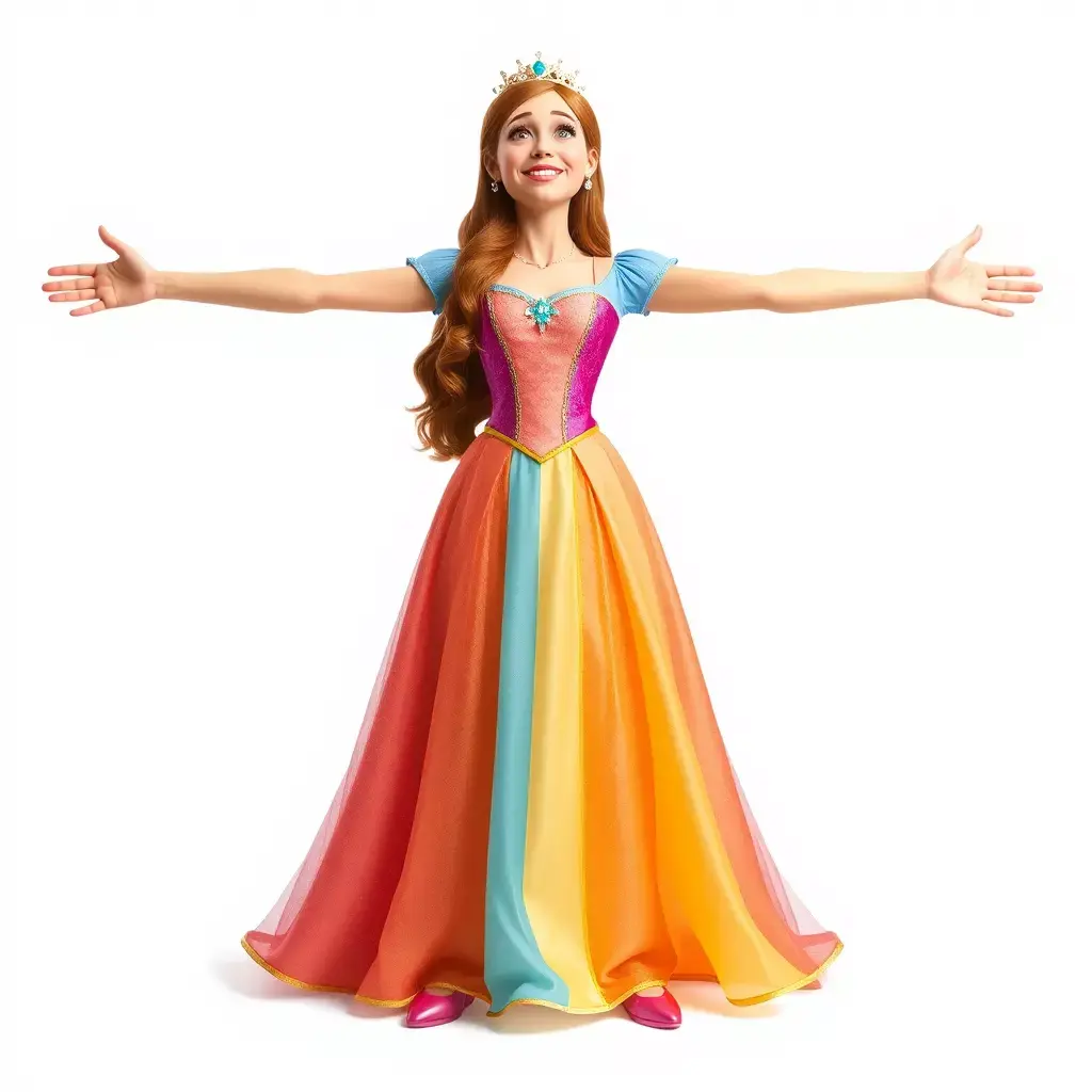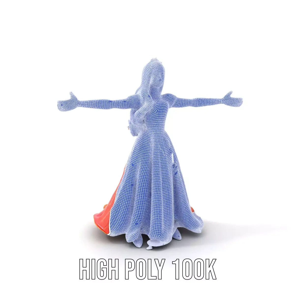 This 3D model pack features a princess character dressed in a vibrant rainbow gown, complete with a crown and joyful expression. Each model has 3 levels of detail: low-poly (1000 triangles for mobile), middle-poly (10,000 triangles for environment), and high-poly (100,000 triangles). This allows for use in production rendering, game engines, and interactive presentations, providing a choice of detail based on the LOD System principle. Perfect for animated movies, video games, and fantasy-themed presentations. The model's textures are PBR, Diffuse, NormalMap, and reflection/roughness/metallic, suitable for any modern rendering engine. All models are accurately unwrapped with no overlapping UV. All textures are 4096*4096 in size. The first image is the reference used for creating the 3D model. It is important to carefully evaluate the quality of the model by examining the preview images that display the topology and polygonal mesh. These previews (WIRE and WEB 3D Preview) clearly demonstrate how accurately the model matches the original reference and how well the geometry has been executed. Please like and leave a comment if you enjoyed the model!
