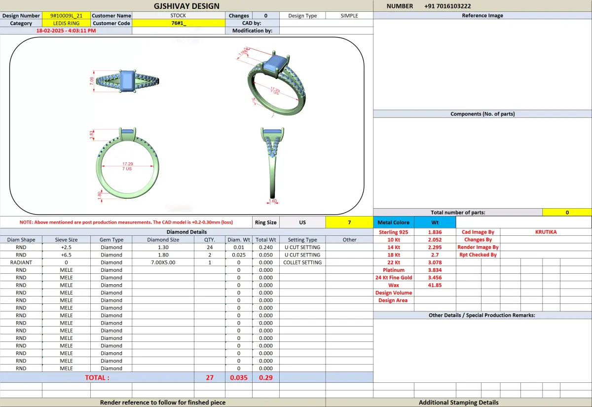 Full support is provided for resizing, stone size adjustments, metal optimization, and design customization. Assistance is also available for file compatibility, manufacturing preparation, and production-related queries to ensure a smooth transition from CAD to finished jewelry.