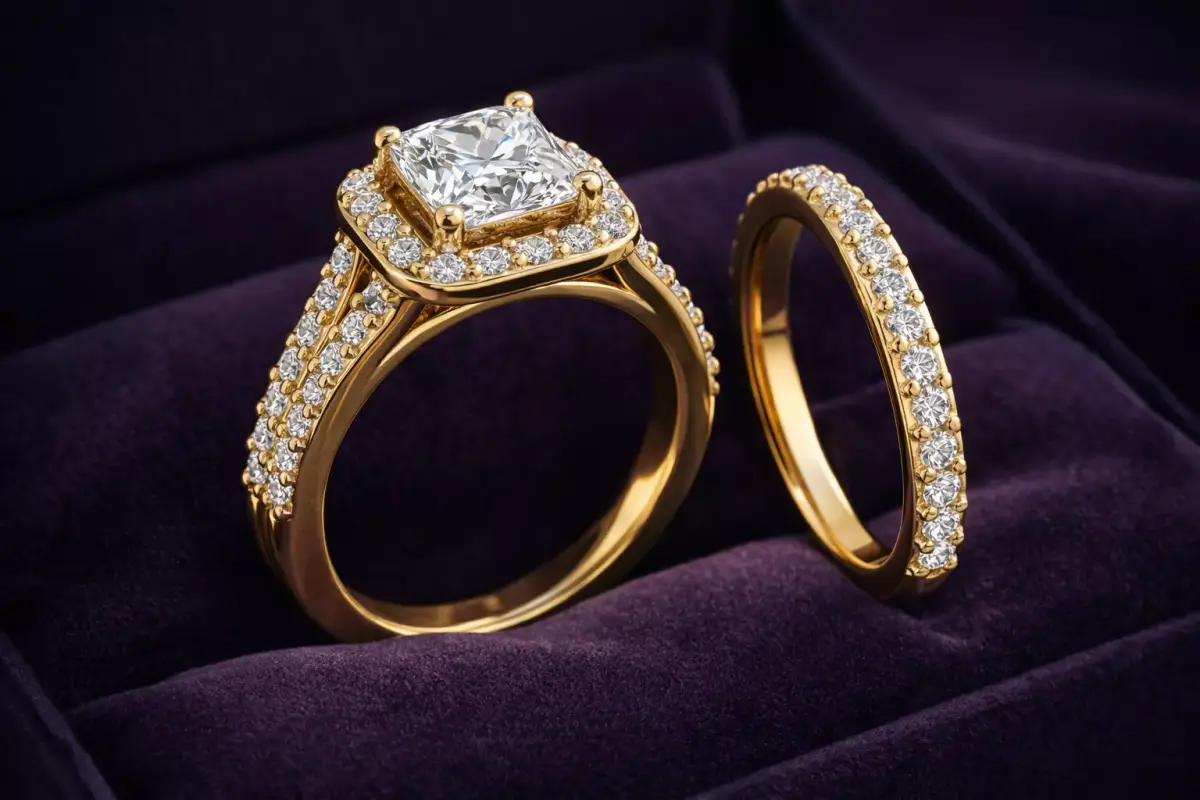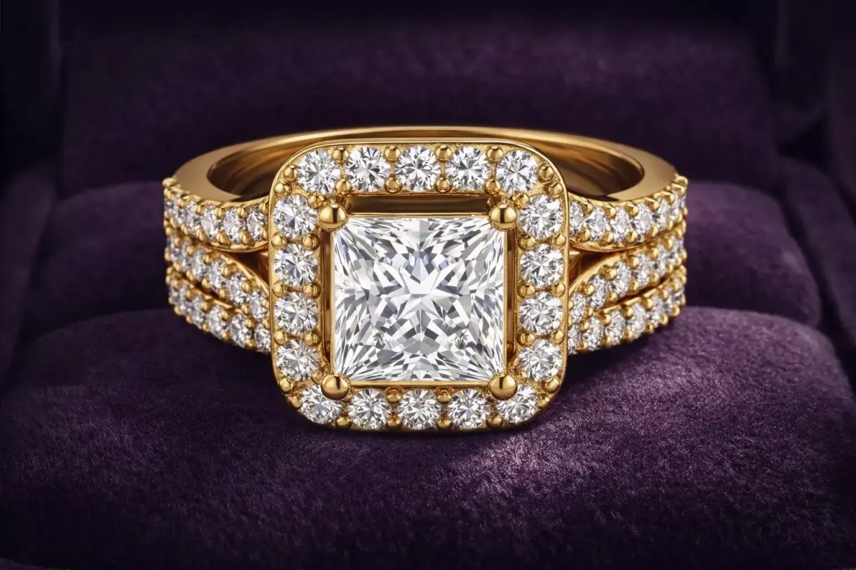 Beautiful 1ct Princess Diamond Halo Engagement Ring Bridal Set - A Gorgeous Selection.