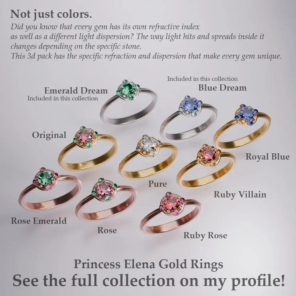 White Gold, highly detailed rings featuring unique designs and procedural textures, available in MTL format. For any issues or specific requests, please feel free to contact me. I'm working to offer various packs that include these rings and other color variations.These photorealistic assets are ideal for commercials and product placements. They are designed to work with realistic lighting and rendering but are not suited for real-time applications. The gem textures are compatible with Cycles in Blender, and have accurate refraction and dispersion indices. If you only need a single ring, don't worry! Contact me and we can make arrangements. Refer to the preview images for more information. The Blender file was created in version 4.1.
