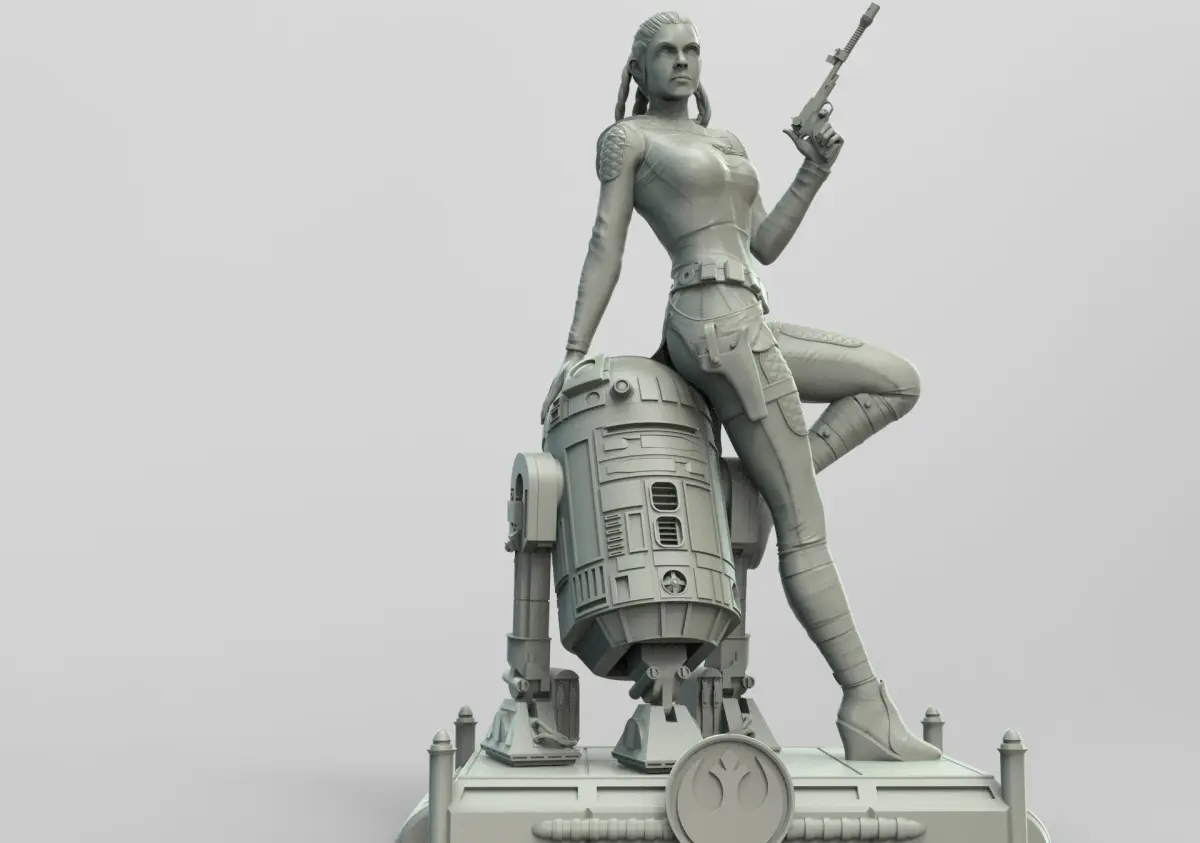 Another Pin Up girl based on princess Leia from Starwars movie. Provided file full assembled and divided into parts for a better print experience.Full scene settings for 30cm of height. Model tested on FDM.