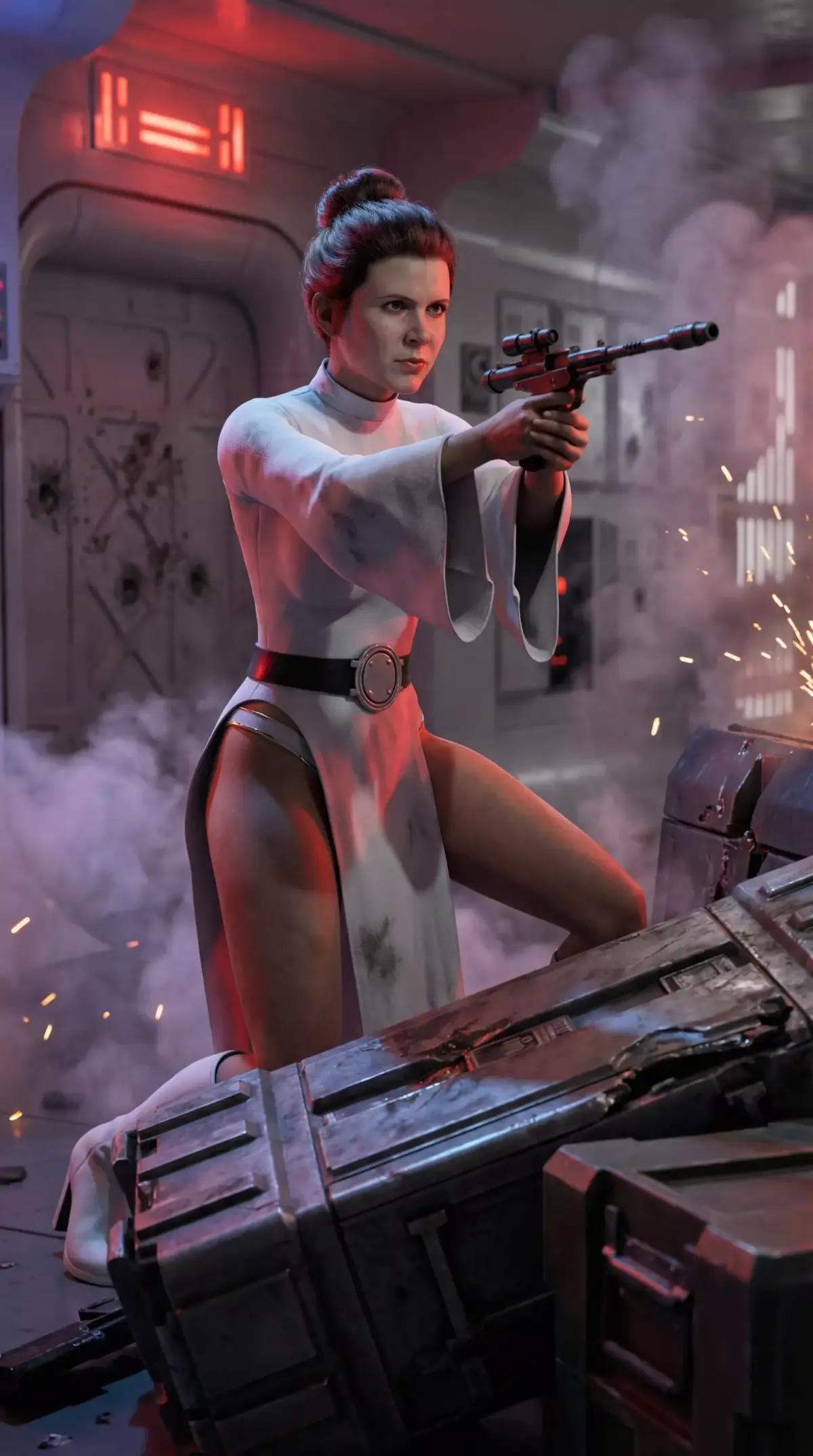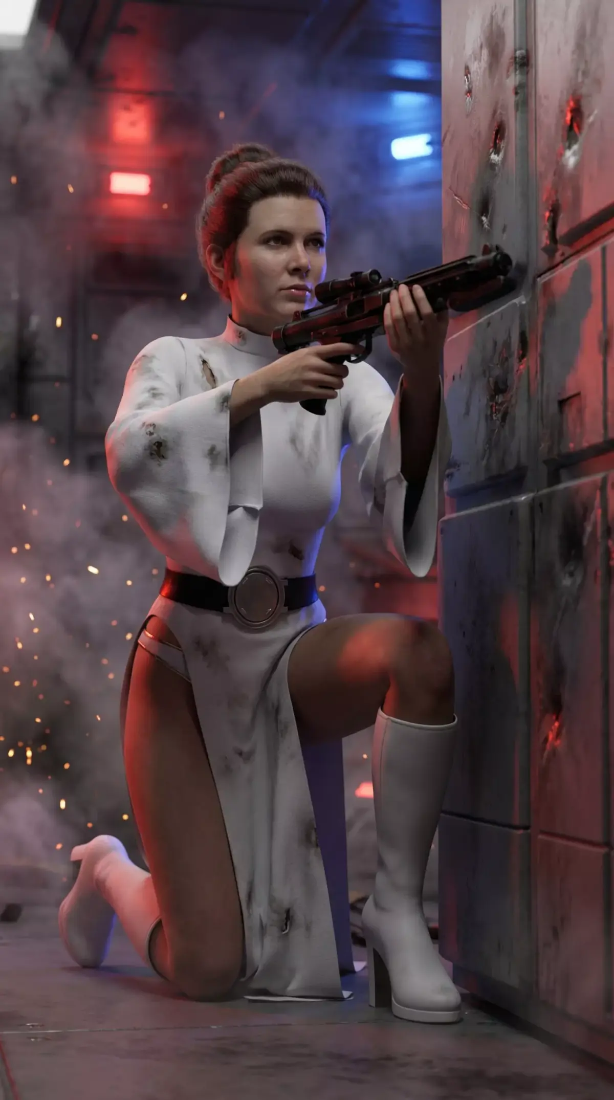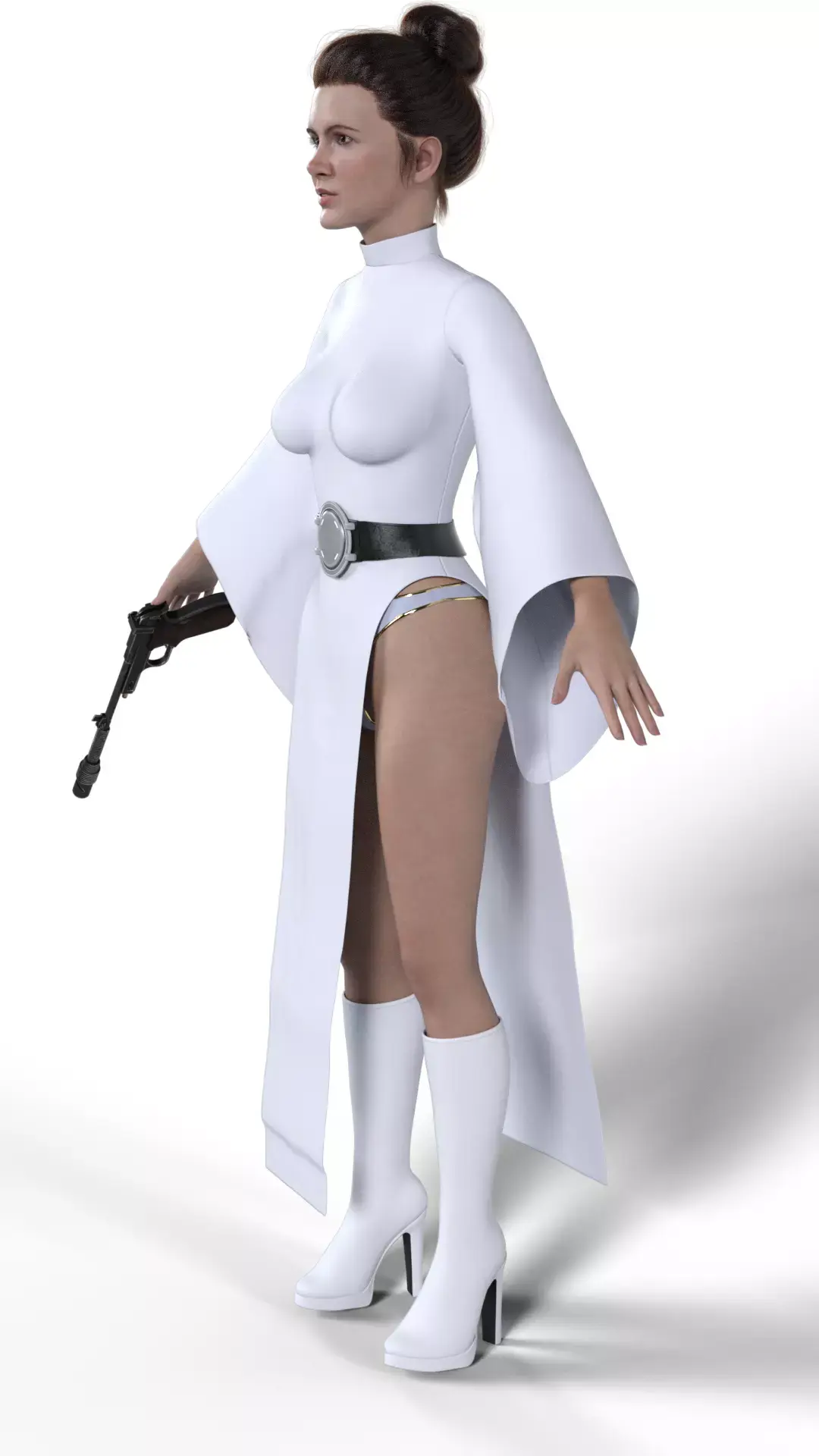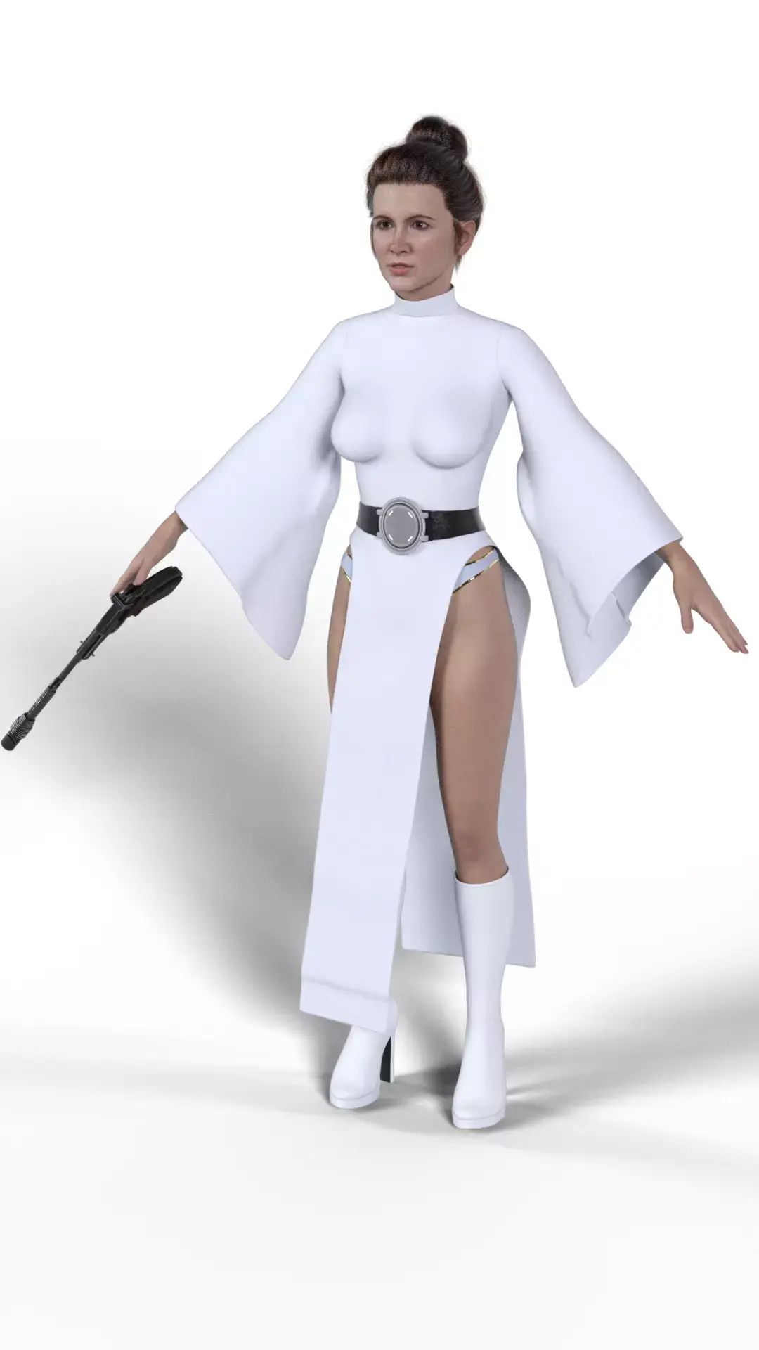 Introducing a high-fidelity 3D model of Princess Leia Organa, the leader of the Rebel Alliance from the Star Wars saga. This asset captures Leia in a reimagined, combat-ready version of her classic white Alderaan robes from A New Hope.