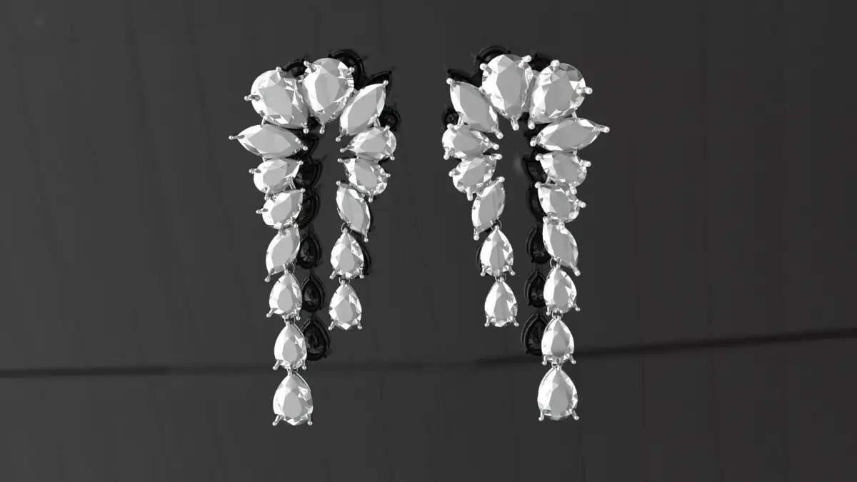 This unique earring model is a statement piece designed for royalty, balancing aesthetic refinement with structural integrity for real-world wear.