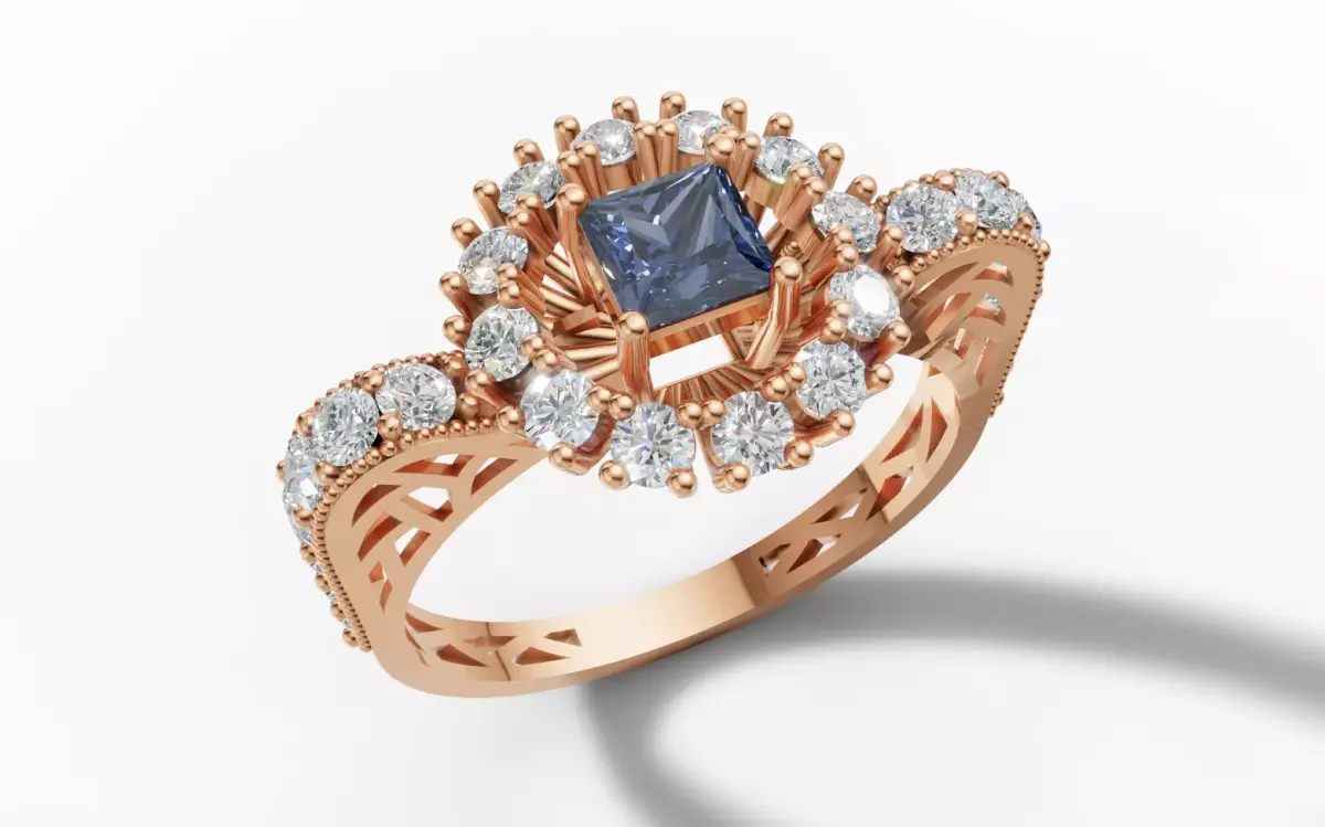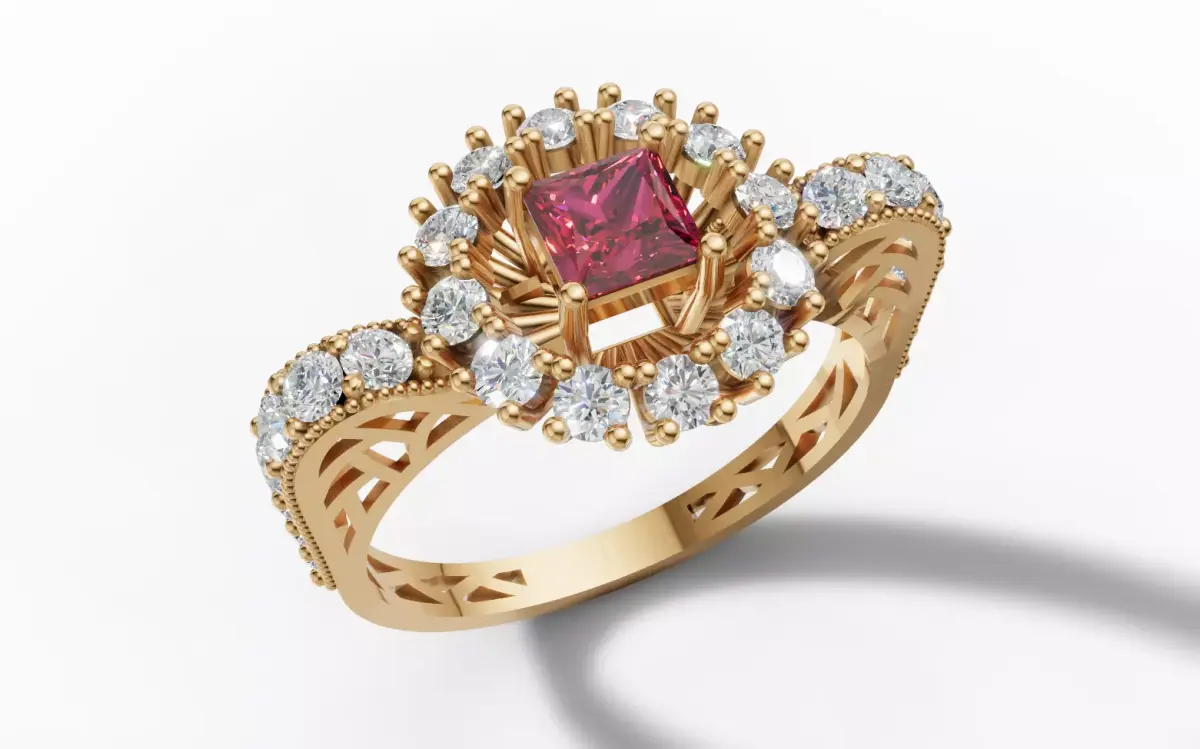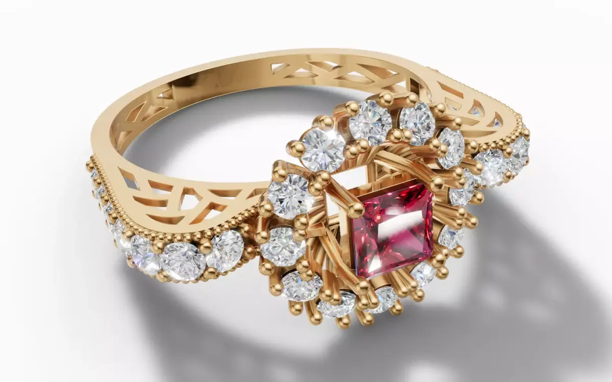 A striking, high-impact statement ring 3D model featuring a brilliant starburst cluster design.