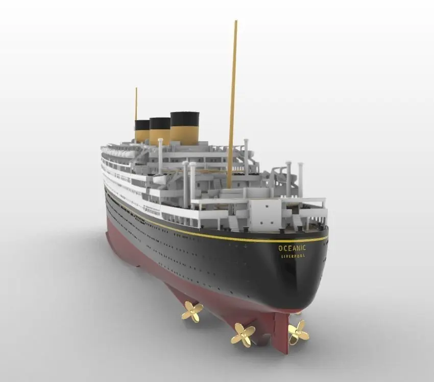 A detailed model of the RMMV Oceanic, the White Star Line's mega-ship that was cancelled after just her keel was laid. Artistic license and educated guesses were used to create this model, as there is very little documentation on this ship, which would have undoubtedly been magnificent and a great competitor to the Bremen, Europa, Queen Mary, Queen Elizabeth and Normandie. Optimized for resin printing, scaled at 1/1000 but very easily printable at larger or smaller scales. Full hull and waterline versions are included.