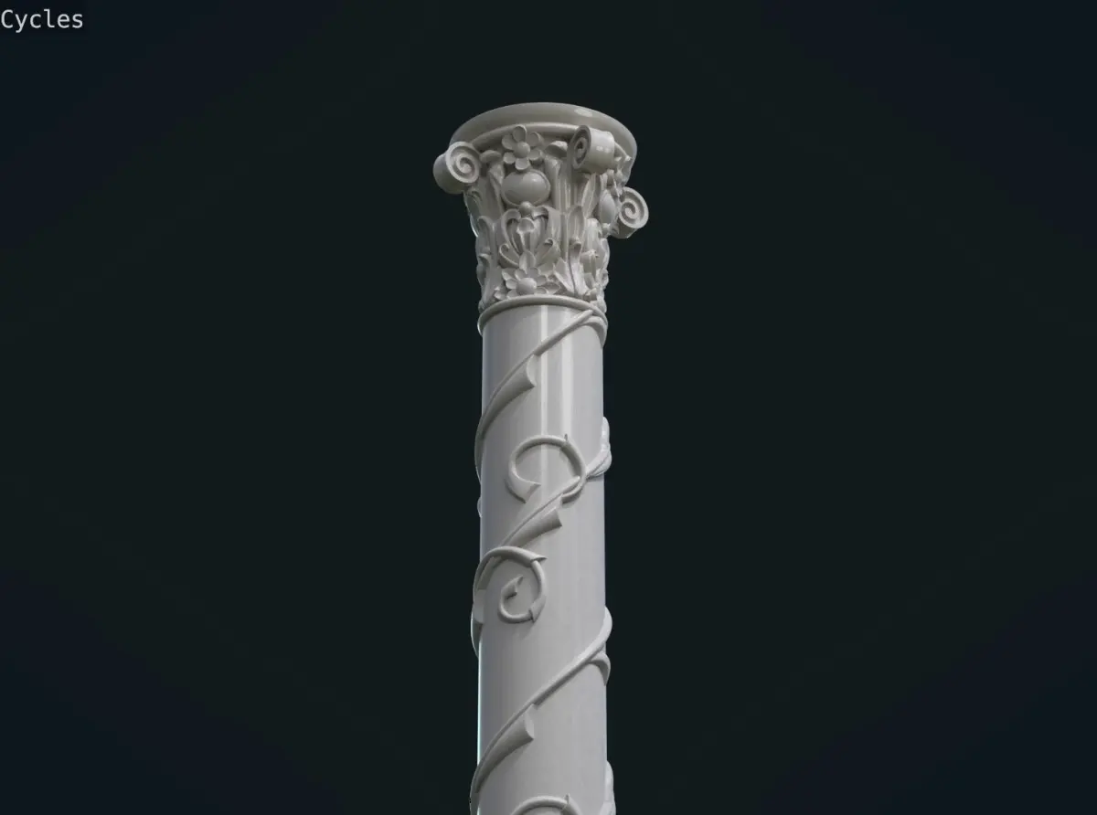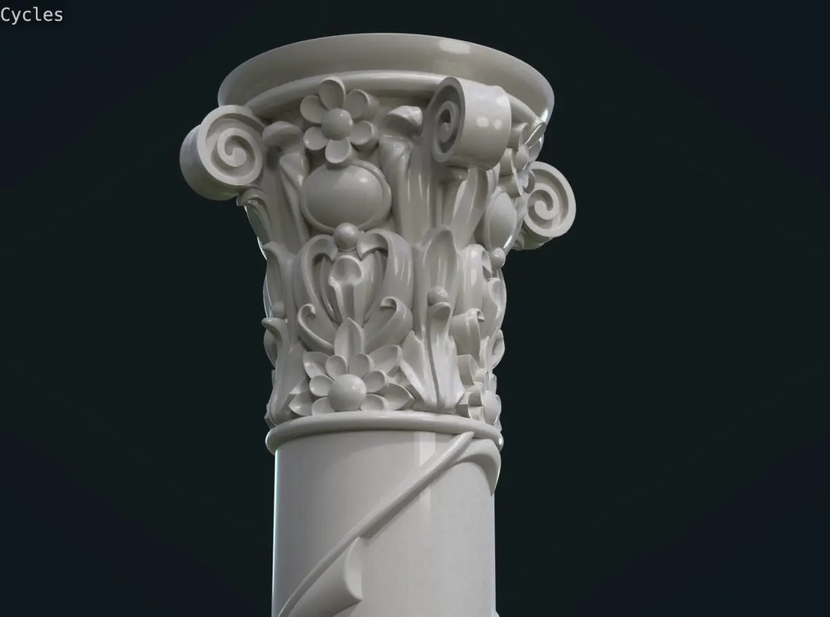2) Column-parts. (.blend, .obj, .stl, .fbx, .dae, ) File contains capital, column itself and base as sepparate parts 675718 triangular faces.