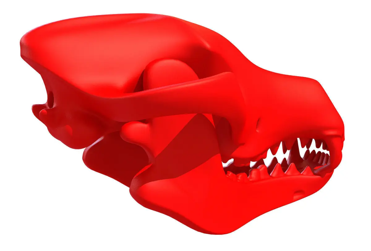 3D print-ready dog skull 3d model.Checked and repaired with professional 3d printing software.Preview images are done in 3ds max using V-Ray render.Note: model contains 2 separate parts as shown in the second preview.