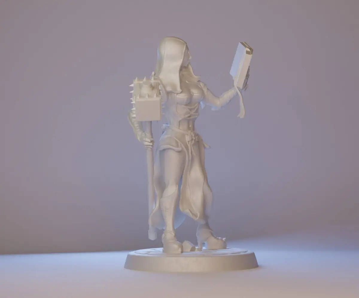 Printable Priestess miniature. Base 25mm. 36mm from floor to eyes. The model has been corrected. Reduced number of polygons. Fixed some bugs.