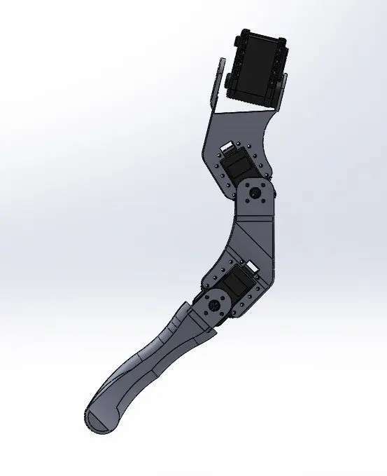 All parts are designed in Solidworks 2015. Robot has 14 parts and 5 different type. Each part has a servo hub but servo hubs designed just for Dynamixel smart servo motors. However,anyone can change the design for their own electronic system via using open source. All parts created in 3d printer and used PLA filaments.