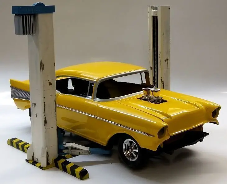 This hoist was designed to create a workshop diorama for some 1/12 scaled model cars. It is meant to be adjusted to whatever height you like. An adjustement to leverage LH/RH height is foreseen, too.