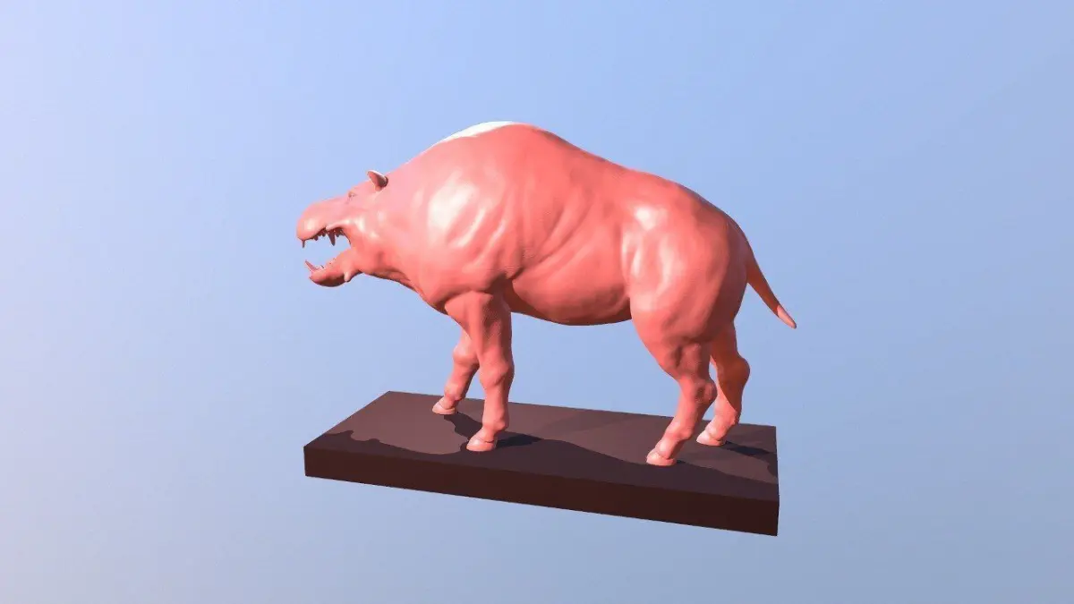 3D-printable model of a prehistoric mammal called Daeodon. Stand included in a separate file.Daeodon is an extinct genus of entelodont even-toed ungulates that inhabited North America about 23 to 20 million years ago during the latest Oligocene and earliest Miocene. The type species is Daeodon shoshonensis, described by a very questionable holotype by Cope.