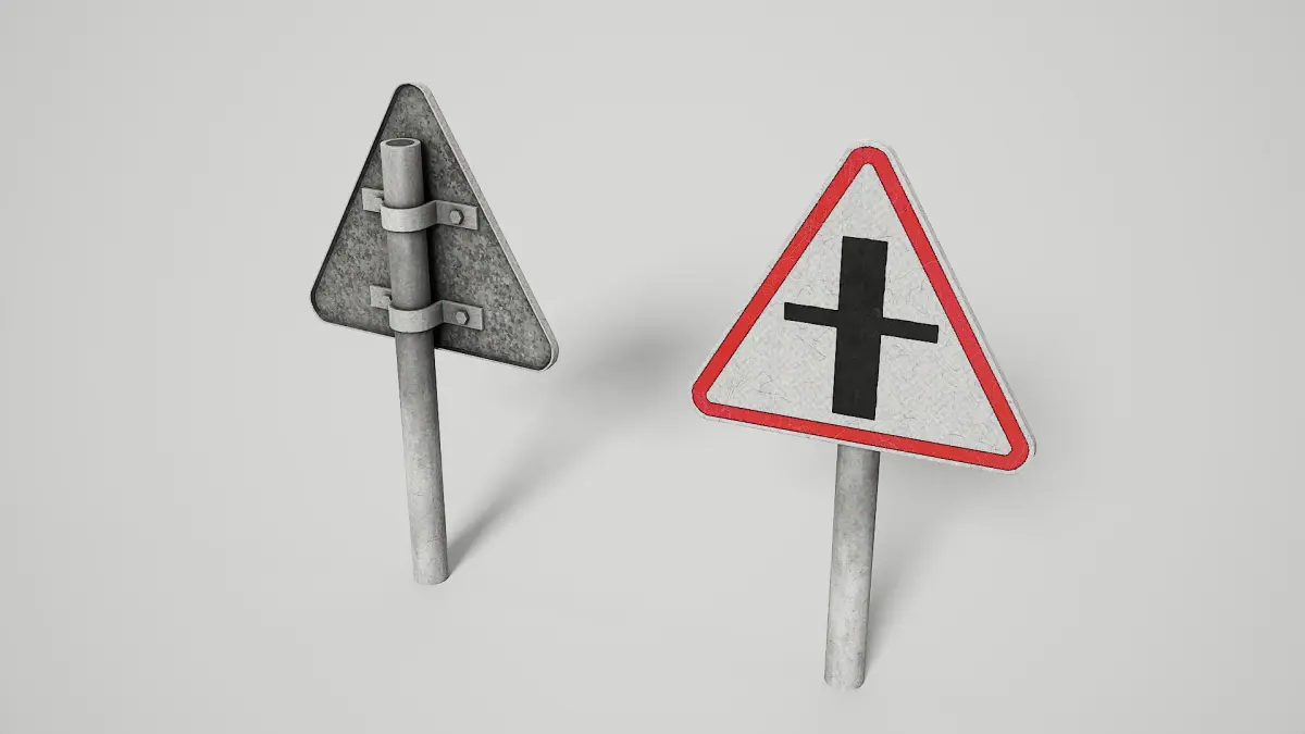 This asset pack includes 13 unique priority and warning road signs inspired by European traffic standards. Each sign is individually modeled, cleanly optimized, and ready for use in real-time applications such as games, driving simulators, VR/AR, and architectural visualizations.