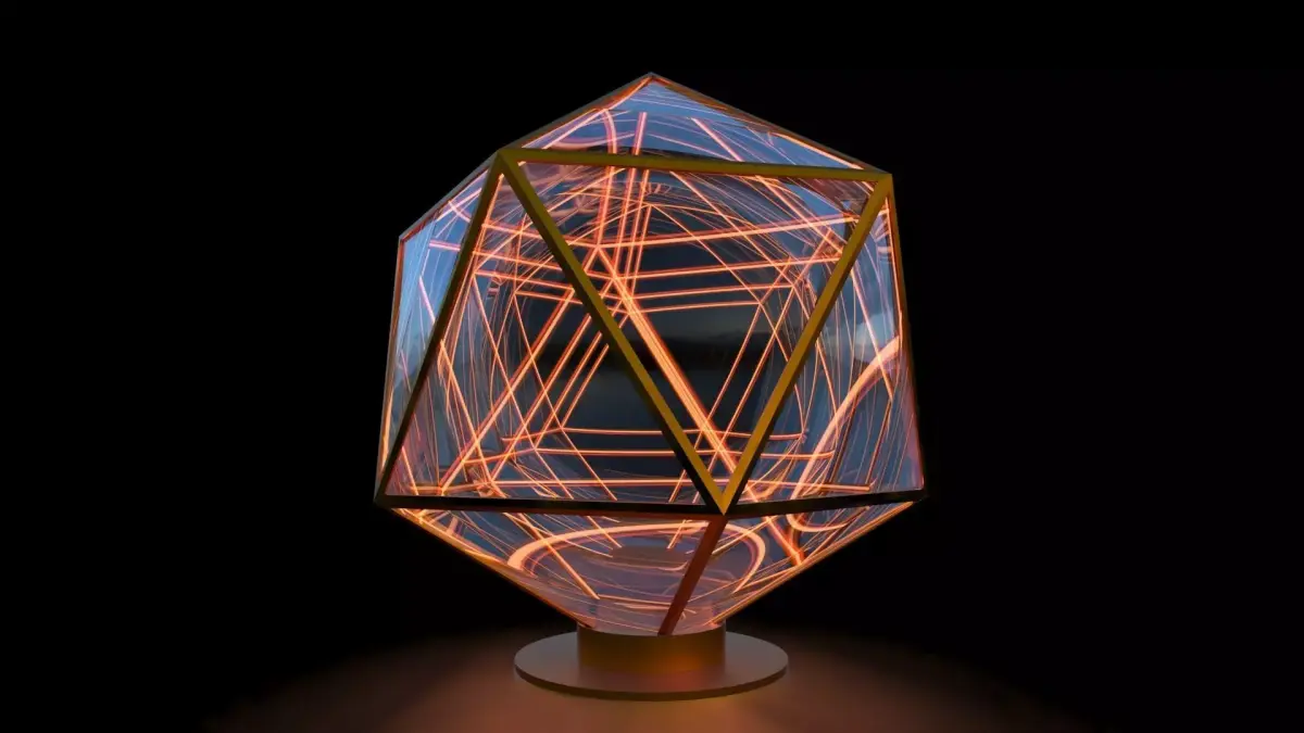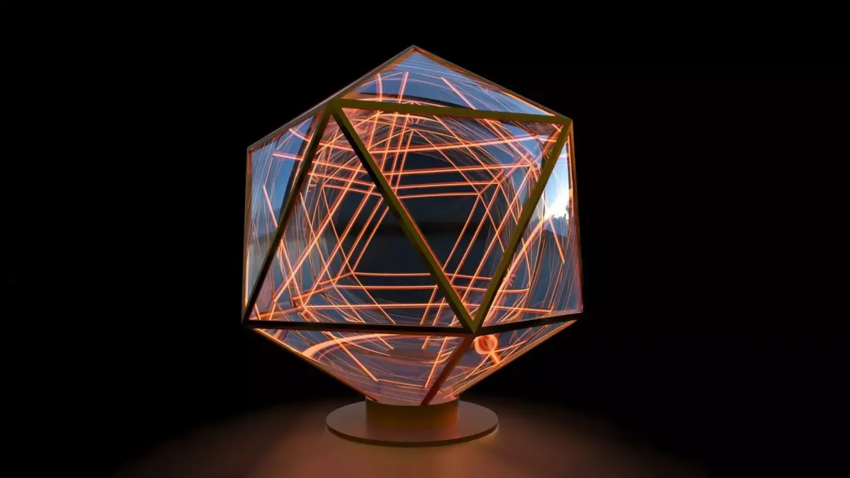 Prism decoration with the posibility to put an object in the center of the elment. The inside is made with mirrors to make an infinity effect.