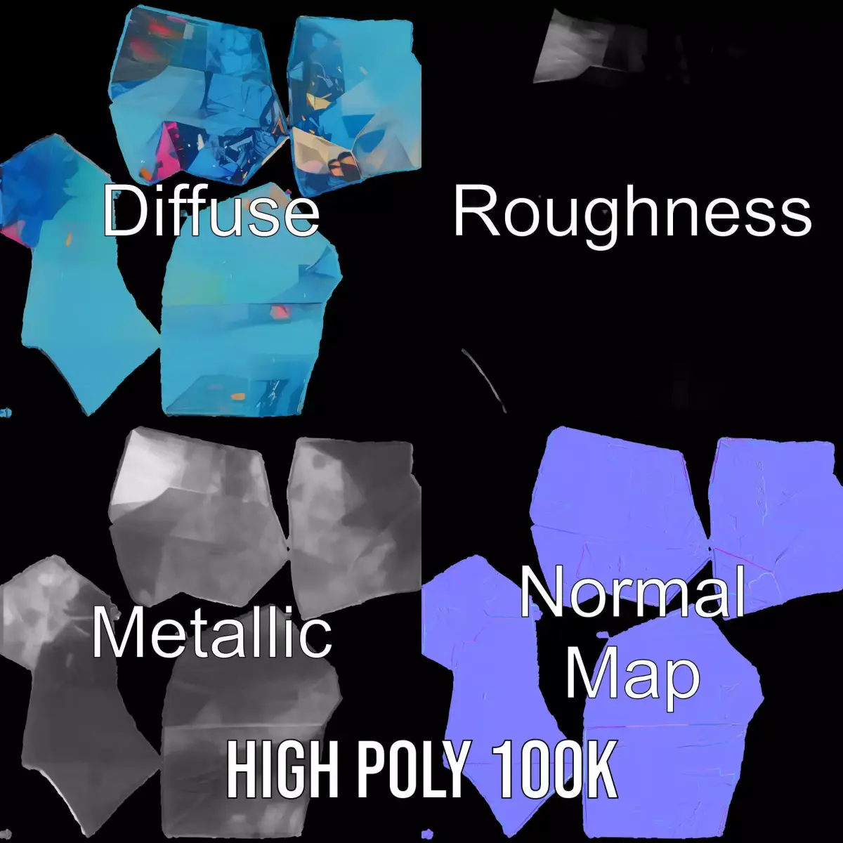 This prismatic gemstone model pack showcases a brilliant and colorful gemstone design, ideal for game environments, product renders, and virtual jewelry showcases. Each model has 3 levels of detail: low-poly (1000 triangles for mobile), middle-poly (10,000 triangles for environment), and high-poly (100,000 triangles), which allows for the use of this model in production rendering (such as 3ds Max, Maya, Cinema4D, Blender, Vray/Corona/Cycles and all others), game engines (Unity and Unreal compatible), and interactive presentations, providing a choice of detail based on the LOD system principle. The model's textures are PBR, Diffuse, NormalMap, and reflection/roughness/metallic, suitable for any modern rendering engine. All models are accurately unwrapped and have no overlapping UVs. All textures are 4096x4096 in size. If you enjoyed this model, please like and leave a comment.