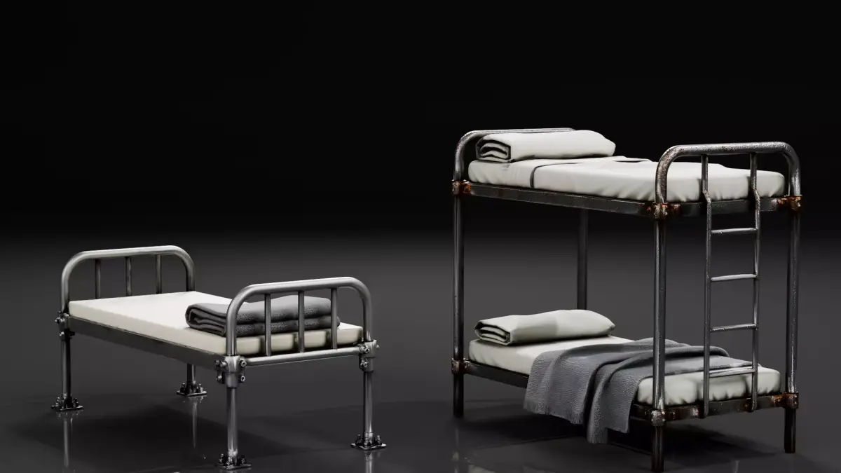 10 essential prison and correctional facility props for game environments. Cell door, metal cot, toilet sink combo, barred windows, surveillance equipment and security props. Perfect for horror games, survival games, escape simulators and open world interiors. PBR textured and ready for Unity and Unreal.