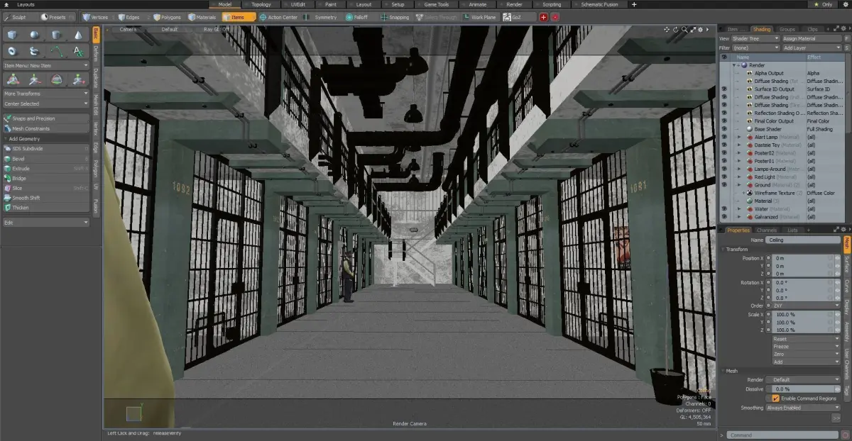 This is a high quality prison interior model that will enhance detail and realism to your rendering projects. The model has a fully textured design that allows for close-up renders, and was originally modeled in Modo 10.