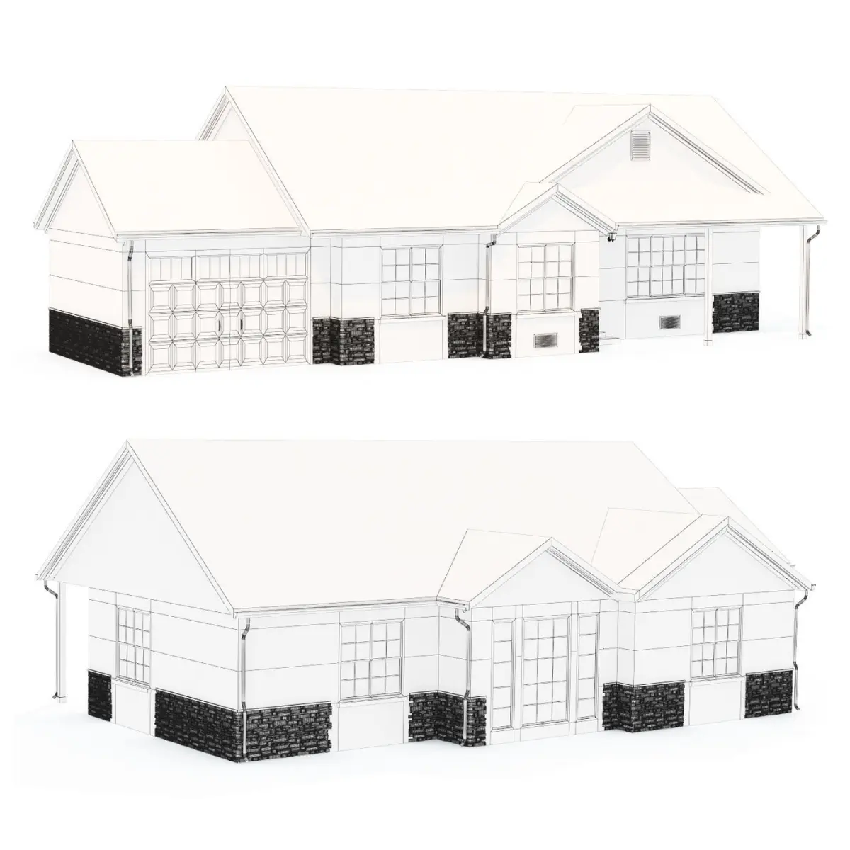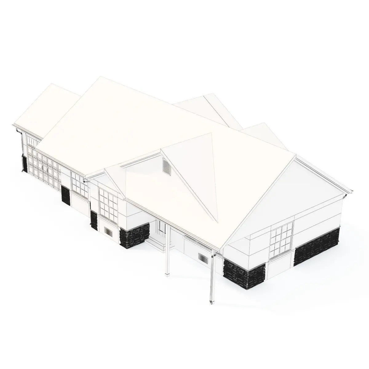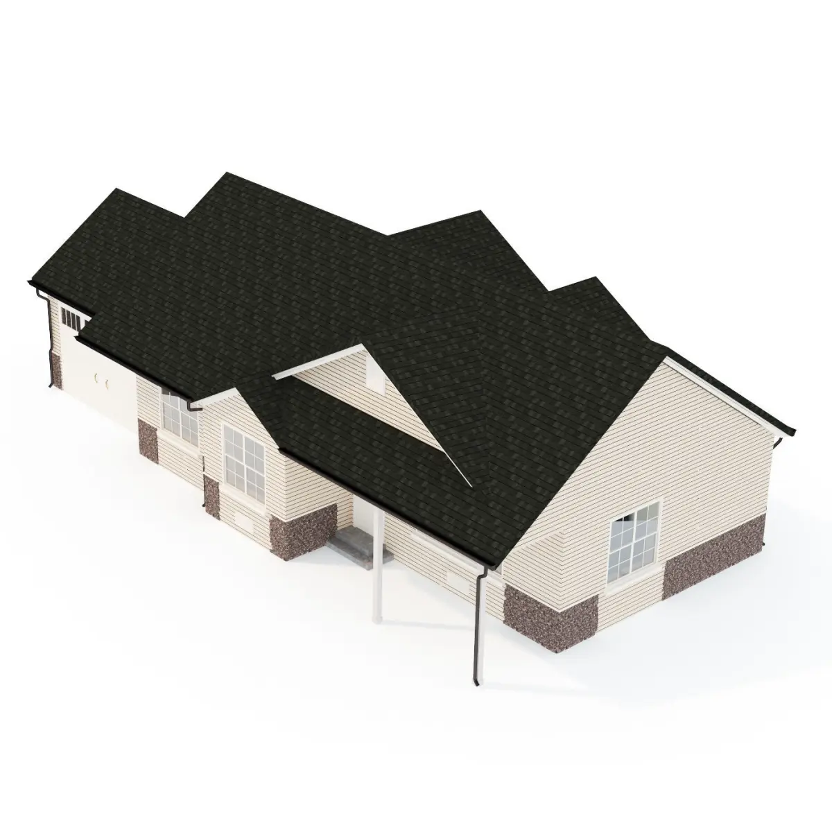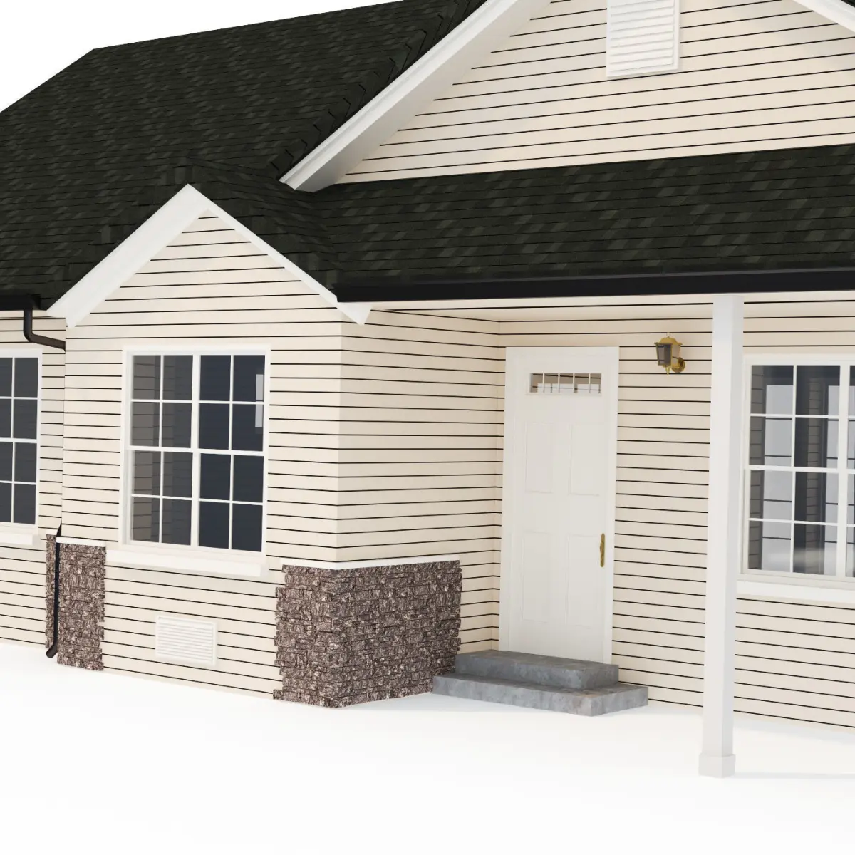 Private house typical of North America. The elements of the house are divided according to the corresponding materials