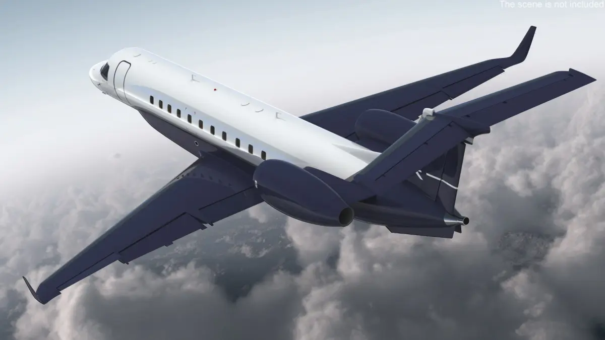 This model showcases the sleek exterior of the jet with detailed attention to its aerodynamic design. The interior exemplifies luxury with spacious seating, elegant finishes, and state-of-the-art amenities, providing an immersive experience of flying in sophistication and opulence.