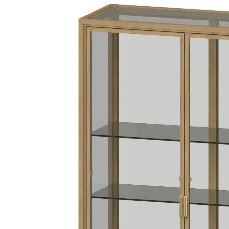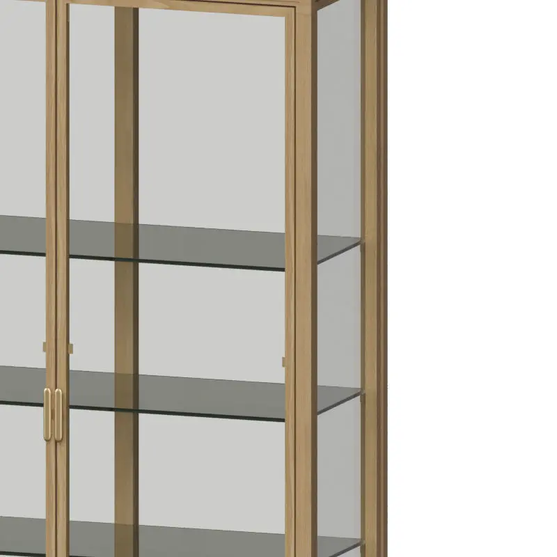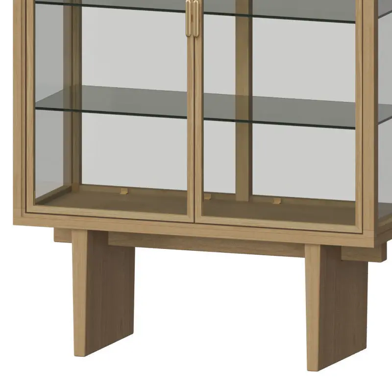 Understated sophistication, timeless aesthetics, and outstanding craftsmanship are the hallmarks of this statement display cabinet designed by Space Copenhagen. Inspired by antique Japanese furniture in both style and craft, this oak-veneered cabinet is elevated by two vertical legs, providing a lightness to its appearance and an understated elegance to its form. The frame secures a tall glass case, with three glass shelves, and two perfectly-aligned glass doors, completing the overall impression of lightness and transparency. Its very simplicity means the Private Vitrine can be used to store and display many types of possessions, from books to precious ornaments. Designed to fit seamlessly into a range different interior styles, the Private Vitrine fits perfectly with the other elements from the collection in the bedroom, lounge or kitchen – or even a hotel or spa lobby. Available in brown/black or light-stained finishes, its classic design, excellent workmanship and immense versatility and functionality ensure that the Private Vitrine will be cherished more and more over time.