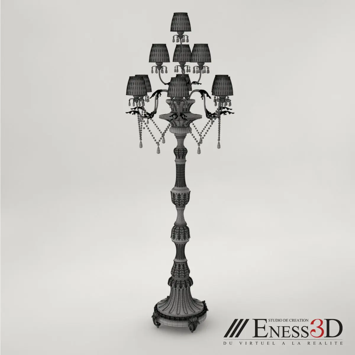 This is high poly floor lampRendered in VrayStack not collapsedincluding textures and UV'sthere is no hidden objectall object are texturedall object are in a group