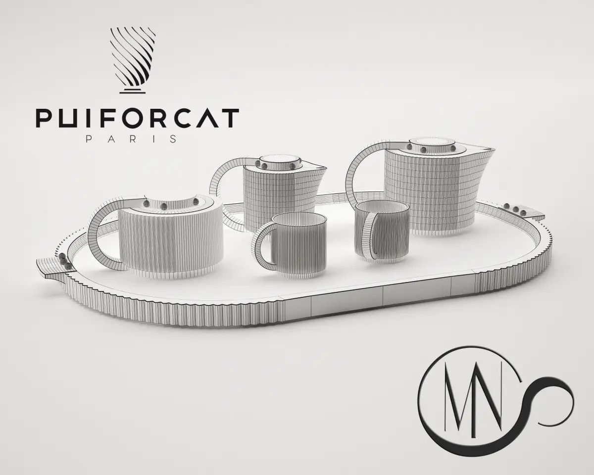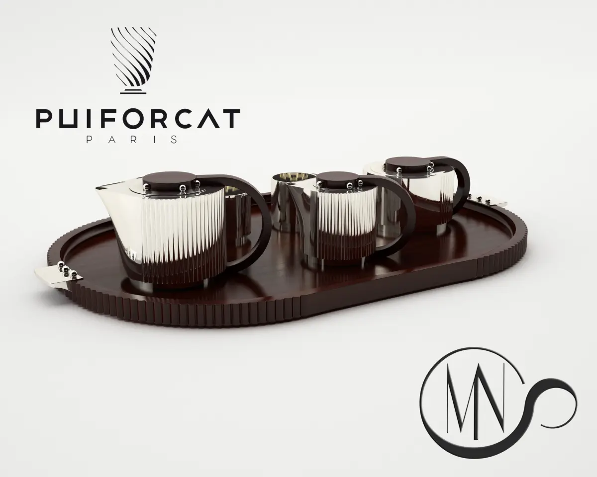 HomeCatalogPro - Service Puiforcat 1930 Silver and Wood Palissandre 3D model