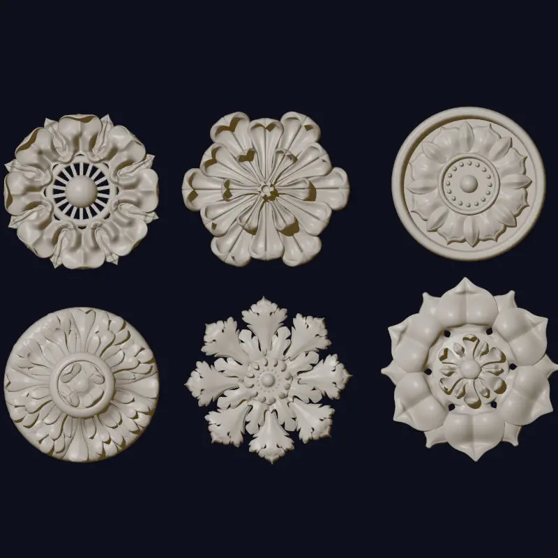 These 7zips files include a Rhino 6/5 non merged (booled) rosette collections for CNC arhitectural projects. It is a professional clean design with closed bodies, clean polysurfaces/NURBS with no gaps. I also include many archives full meged closed bodies also with no gaps or design errors. exported in many formats: .OBJ, .BLEND (Blender), .3ds (3D Studio), .DWG (Autocad), .IGS (Maya, SolidWorks...), .IPT (Inventor) , STL, all are fully usable and professional quality.