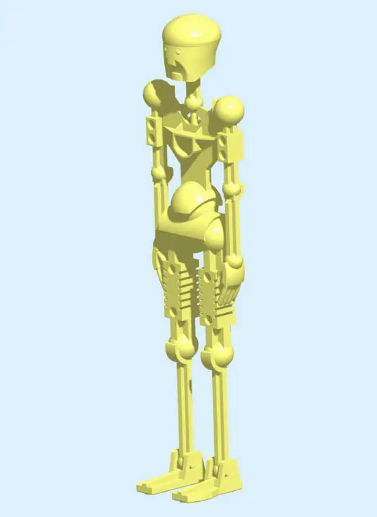 Detailed File Information This model was developed using the 50 percentile adult male, average height is 69.1" (175.5 cm), average weight is 172 lb (78.4 kg). The dimensions used to create this model are "normal" or mean for this age group. Human dimensions vary widely among the "normal" populations.The data was collected from "The Measure of Man and Woman: Human Factors in Design" by Alvin R. Tilley (Watson-Guptill Publications, NY, 1993).The model is made as a single Pro/ENGINEER part file, compatible with release 2000i and above. In order to simplify this model and reduce the regeneration time, the robot's limbs have been stylized as simple shapes, but within the normal human dimensions.The model has the following degrees of freedom (DOF):Head: 1Neck: 1Shoulder: 2Elbow: 1Hand: 2Torso : 3Pelvis: NoneHip: 2Knee: 1Ankle: 2