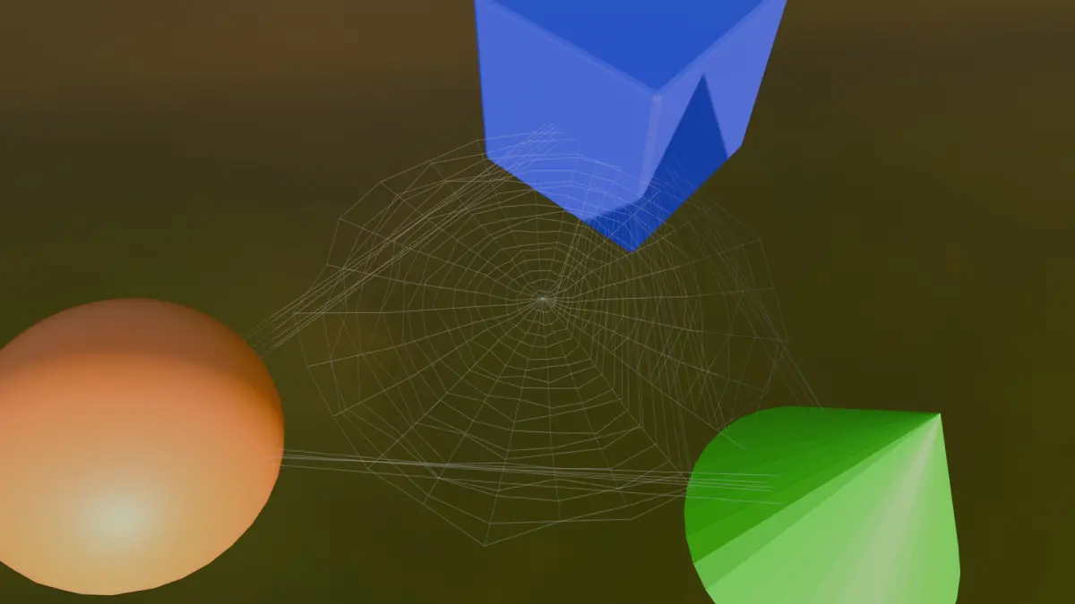 A blender script to generate cobwebs dynamically between multiple objects.Simply select all your desired objects in the scene, and click run script.See video preview.