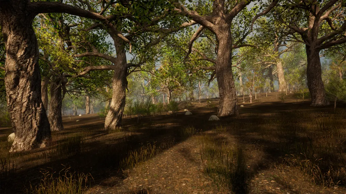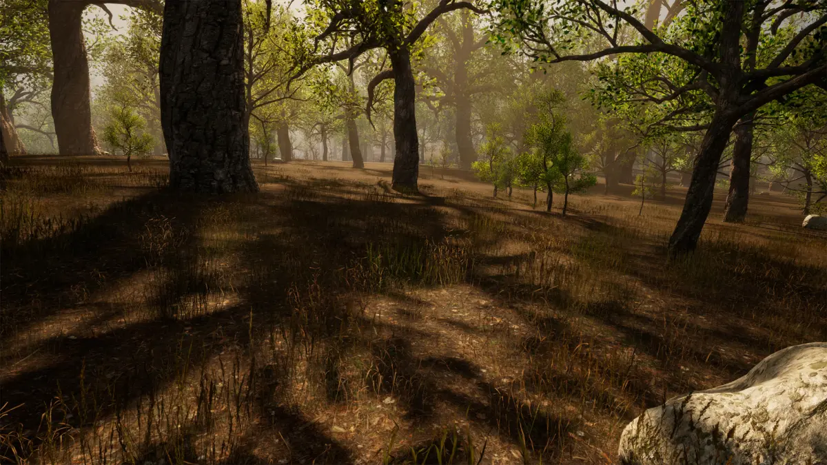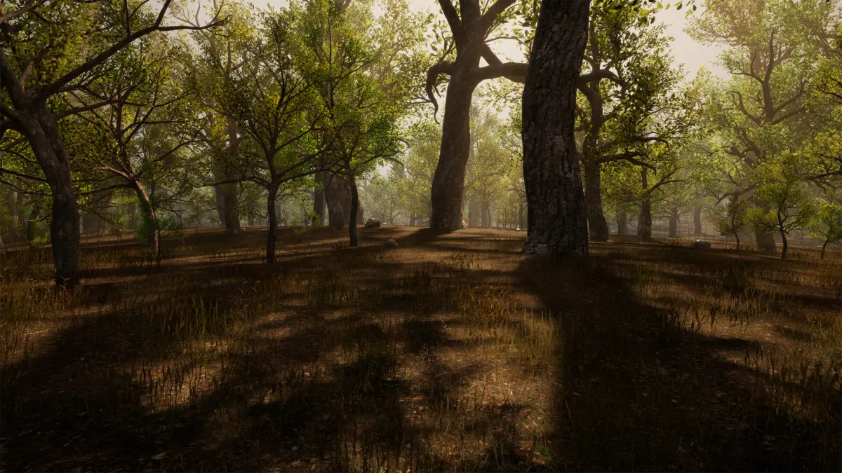 The pack comes with a landscape auto-material with 8 layers so you can paint grass, rock, many types of dirt, forest ground etc. The pack also comes with 20 oak trees, 7 grass types and 8 rocks (all the static meshed are Nanite enabled).