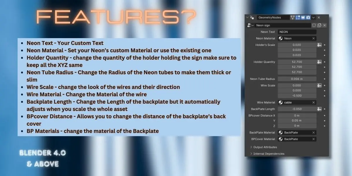 Introducing the ultimate tool for Blender artists and designers: the Geometry Node-based Procedural Neon Sign. Designed to seamlessly integrate with both Eevee and Cycles rendering engines, this innovative product offers unparalleled versatility and creativity in your 3D projects.