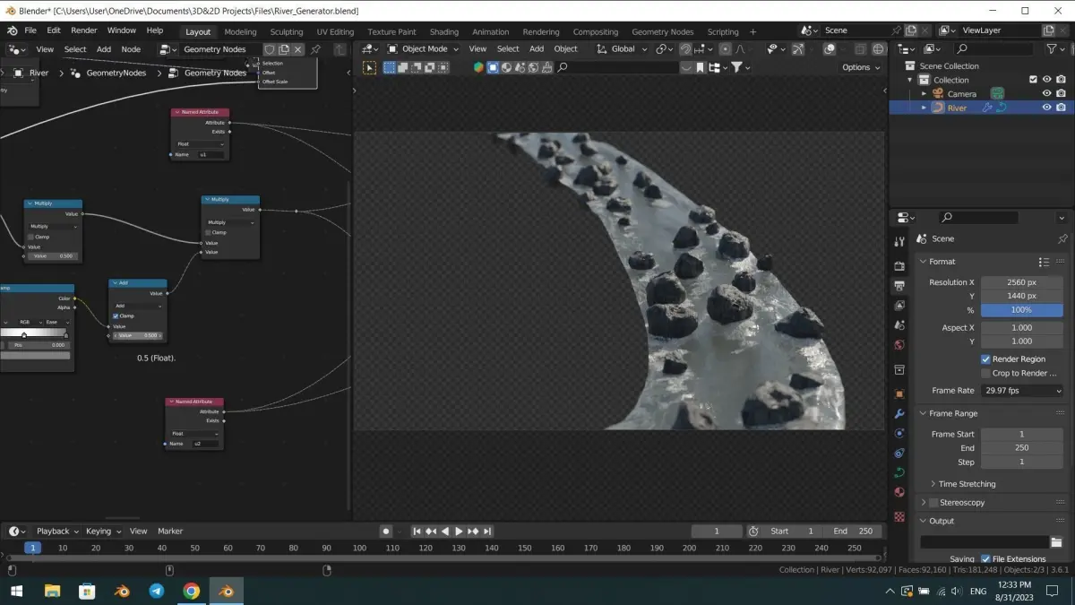 This is a procedural realistic river generating tool made in Blender 3D. It can be used both in Cycles and Eevee well. Enjoy:>